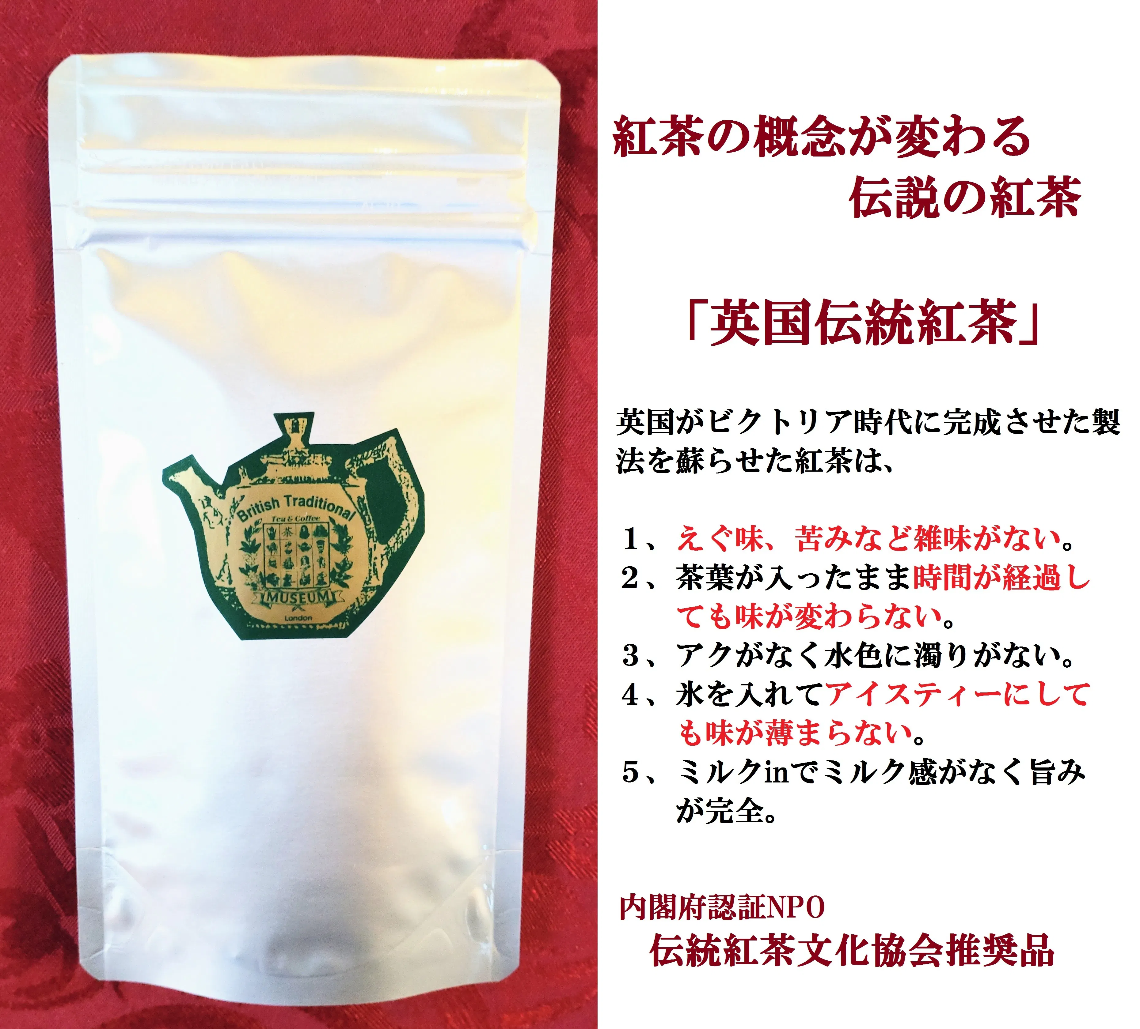 「内閣府認証 NPO 伝統紅茶文化協会推奨」