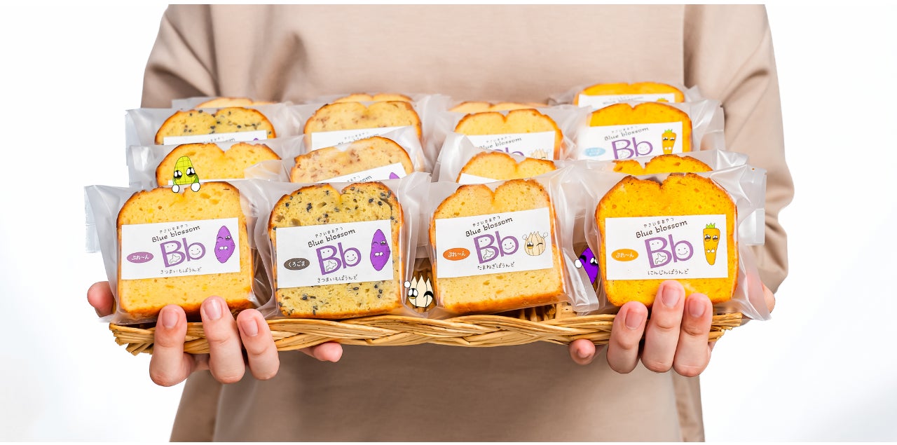 ブルーブロッサムは、北海道札幌市を拠点に、規格外野菜を使った“やさしい甘さ”のパウンドケーキを製造・販売しているおやつブランドです。