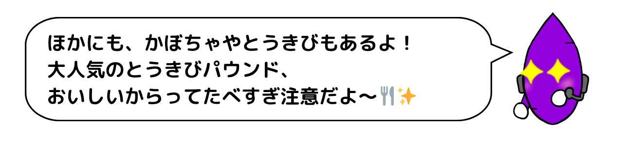看板商品である「やさいのパウンドケーキ」は、さつまいも・にんじん・たまねぎ・小松菜など北海道産の野菜をたっぷり使用。素材そのものの色と甘みを活かし、見た目も味も楽しんでいただけるよう丁寧に仕上げています。「野菜が苦手な子でも食べられた」「ギフトにしたら話題になった」といった嬉しい声も、たくさんいただいてきました。
