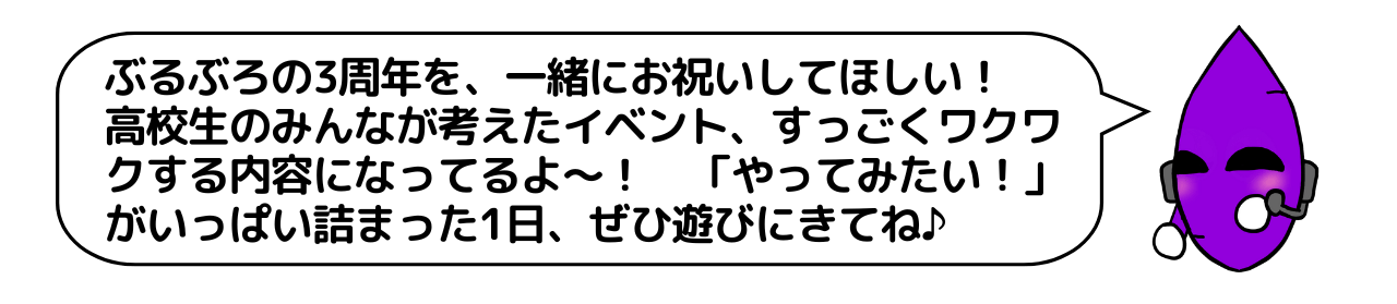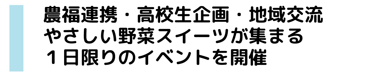 「やさいのおやつ ブルーブロッサム」は、今年で3周年!これを記念して、高校生と一緒に企画・運営する特別なイベントを開催します。