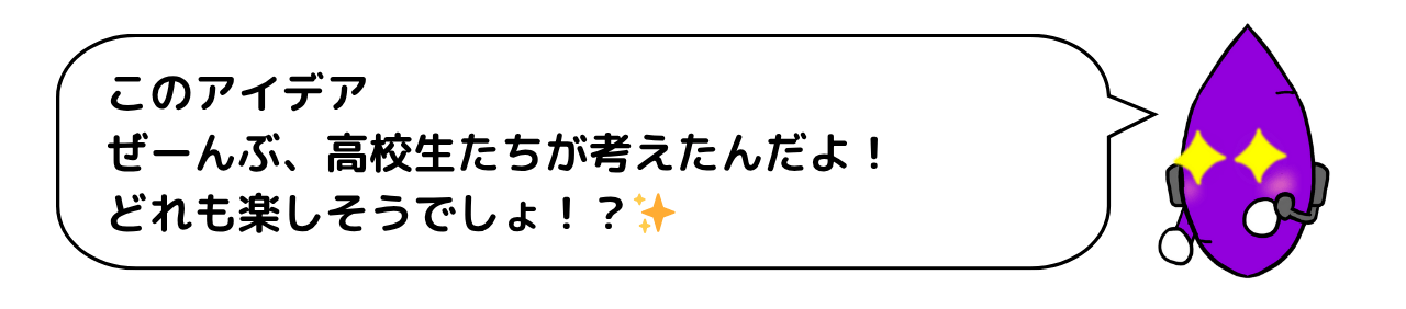 このイベントでは、高校生のアイデアを軸に、地域の人たちや企業の方々も巻き込みながら、子どもから大人まで誰もが楽しめる空間を目指します。