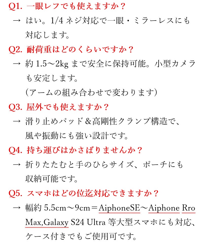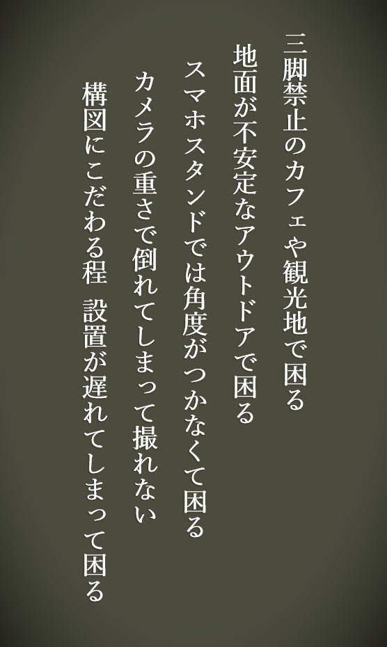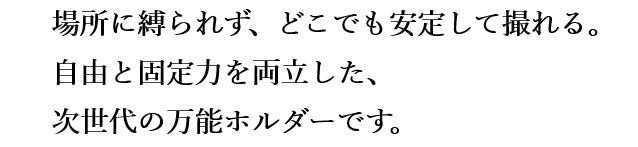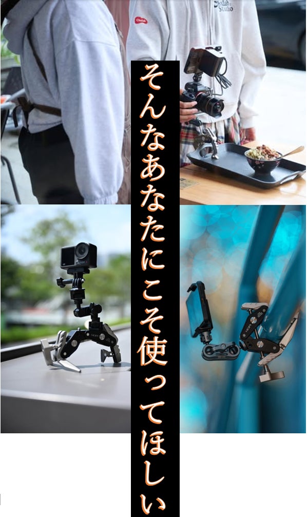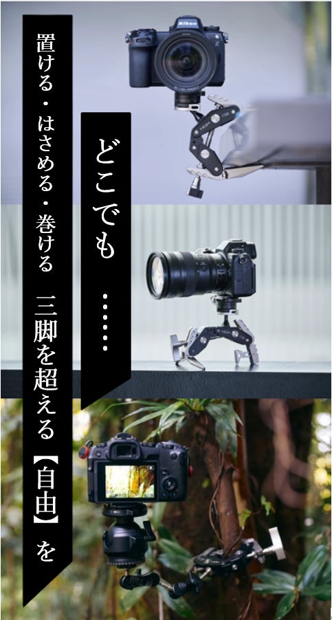 どこでも“挟めて”“巻けて”“置ける”、自由な撮影ホルダー。スマホも一眼も瞬時にベストアングル。枝にも机にも手すりにも、自由に固定。どんな場所でも一発セット。撮影の自由を奪う三脚にもう縛られない。撮影の可能性が無限に広がる。構図も光も思い通りに操る新時代の万能ホルダー。今この瞬間を最高の1枚に。