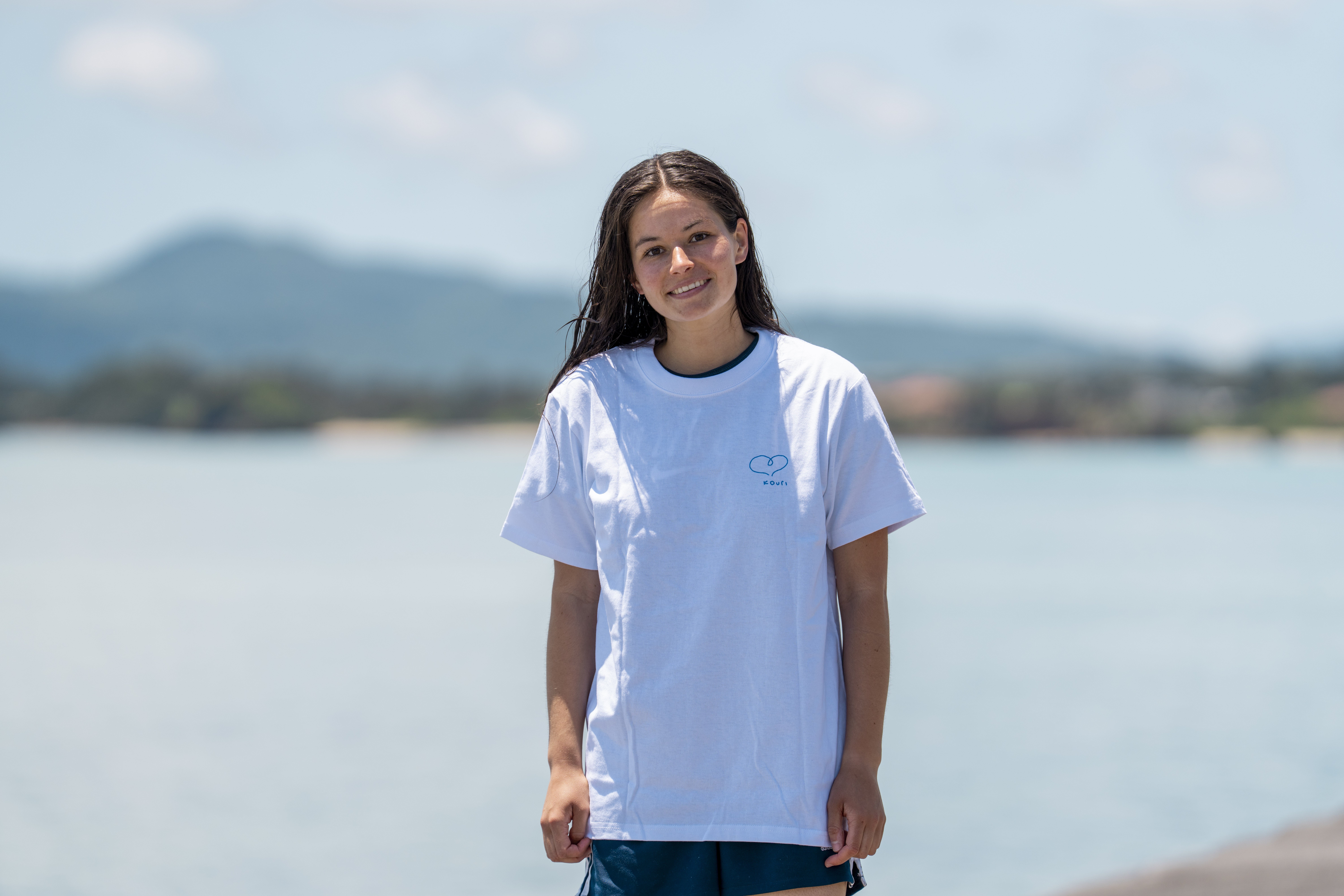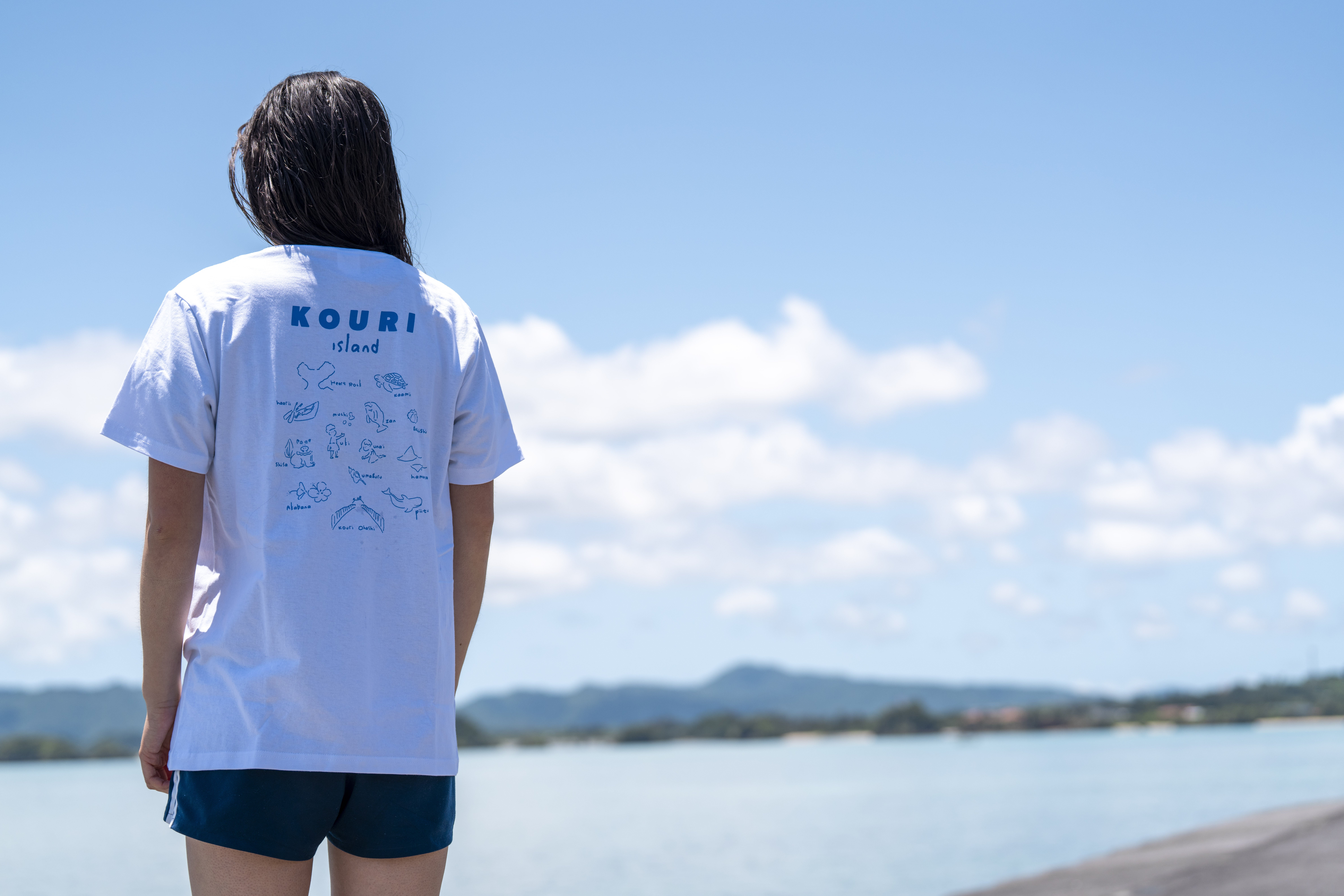 本当に古宇利島限定のTシャツです♪白を基調に青であしらわれたデザインは海を連想させます。