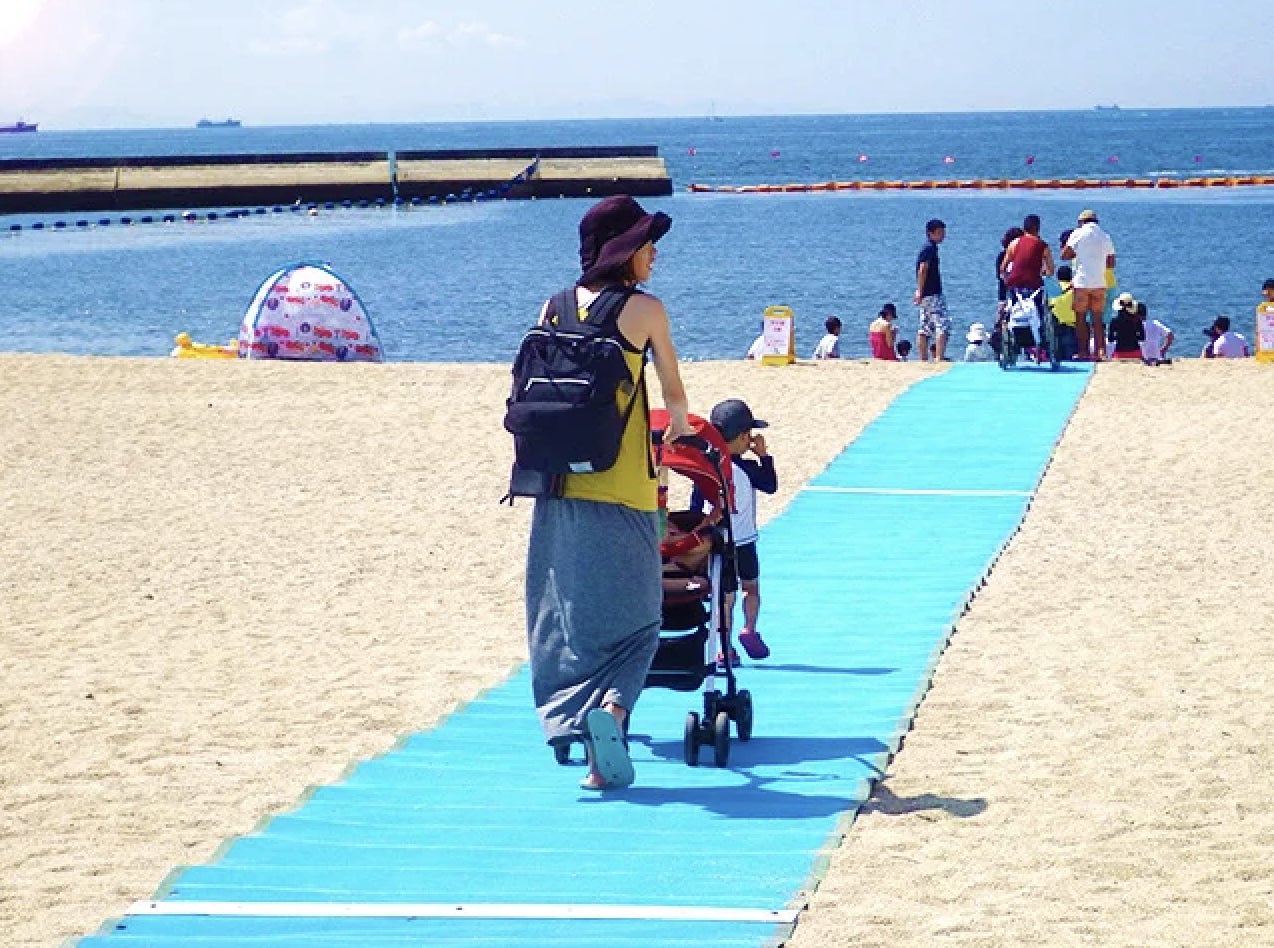 障がいの有無や年齢に関係なく、誰もが安心して海を楽しめるように設計されたバリアフリーなビーチのことです。車いす利用者や高齢者、小さなお子さんなど、これまで海辺での活動が難しかった人々も、自由に海水浴やマリンアクティビティを体験できる環境が整備されています。