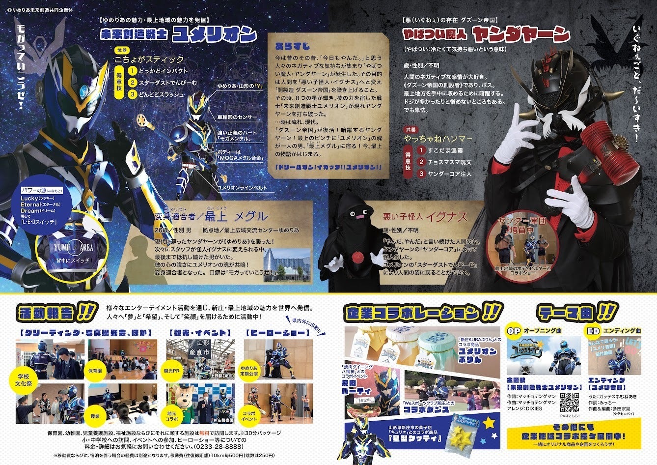 約3年前に山形県北部<最上地域>にて最上地域のご当地ヒーロー【未来創造戦士ユメリオン】を誕生させました。