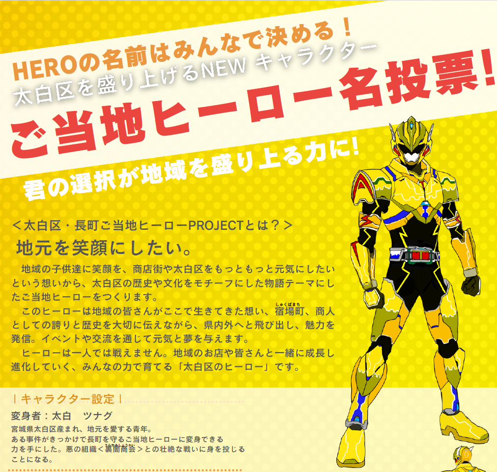 『太白区・長町のご当地ヒーロー創造プロジェクト』に興味を持っていただきありがとうございます!