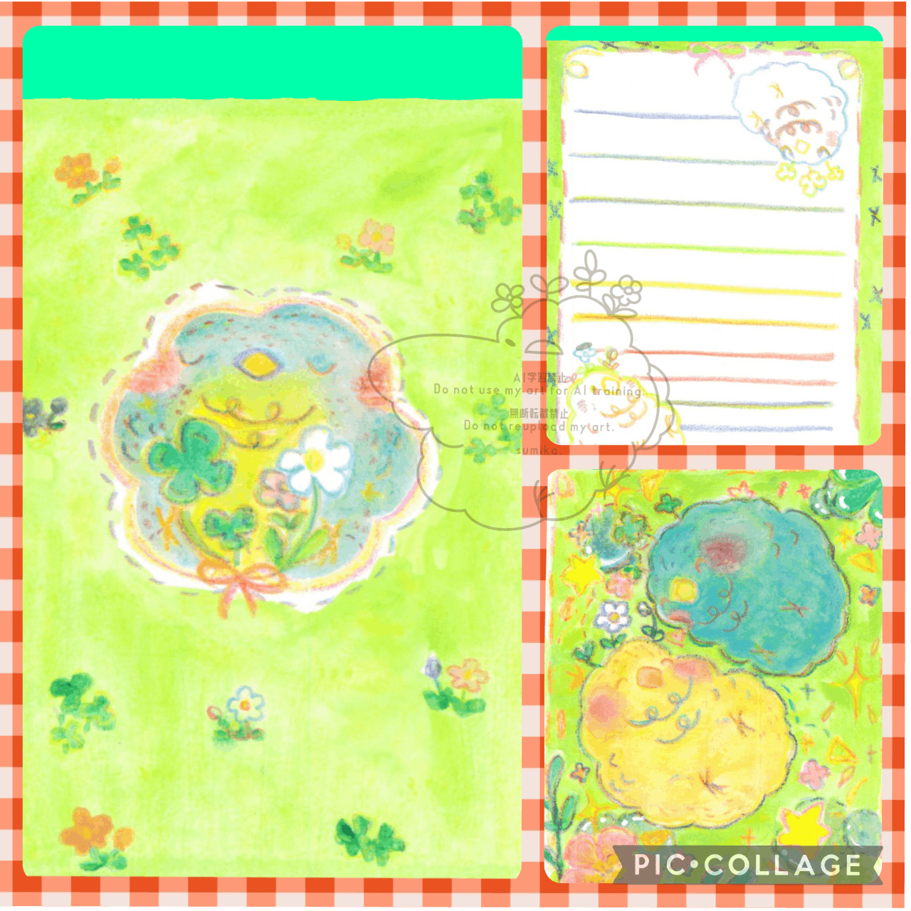 大好きなみどり色をメインカラーにアイコンにもつかっている『なぞのとり』さんが仲良く過ごしているところを描いてみました♡♡