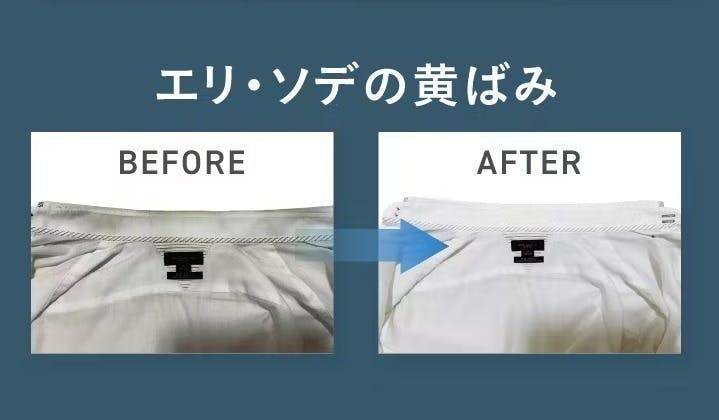 エリソデの黄ばみや皮脂汚れなど衣類に蓄積される汗や皮脂を分解し、繊維から取り除きます。長時間使用した衣類に発生する黄ばみも分解し、衣類を白く保ちます。
