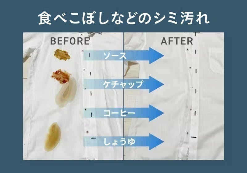 ふとした時に起こってしまう・・衣類についてしまったソースやケチャップなどの食べこぼしも予洗いなしでスッキリきれいになります。お子様の食べこぼしや泥ドロ汚れも細かい泡の力で洗浄を手助けします。