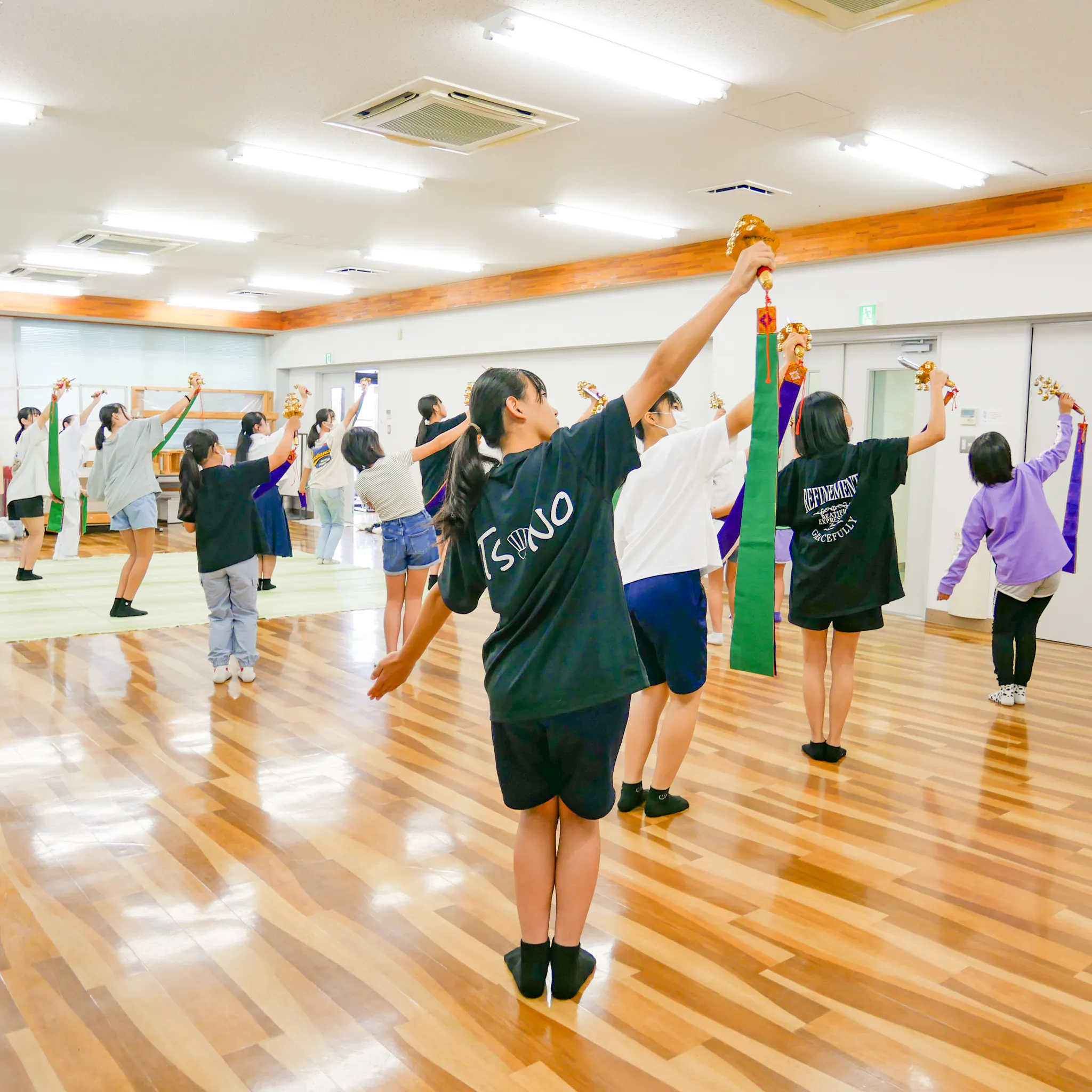 各太鼓台の花飾りの作製や、各団体の奉納舞踊・パレードの練習、衣装の準備などなど、みんなで協力しそれぞれが役割を担い、繋いでいます。