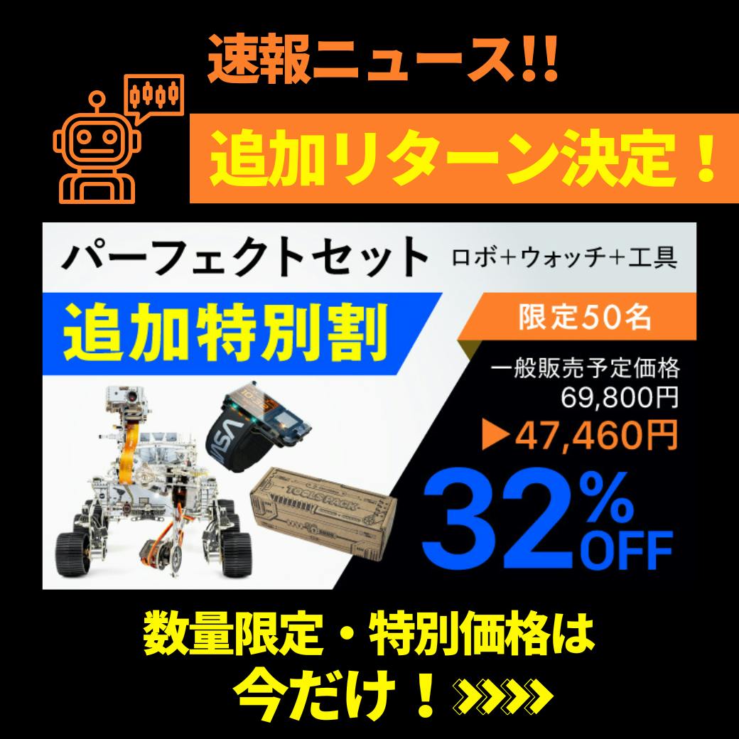 【速報】数量限定・追加リターン決定!NASA公式ロボットキット「火星探査ロボ・ローバー」完売していた【パーフェクトセット】が…たくさんのご要望を受け、社内協議の末――\数量限定で追加決定/電子工作×STEAM教育を、ご家庭で楽しめる“未来の体験”想定を超える反響と応援、本当にありがとうございます!なお、追加分も完売が予想されますので、気になっていた方はこの機会にぜひお早めにご確認ください! ▼プロジェクトページはこちら▼https://camp-fire.jp/projects/852557/view
