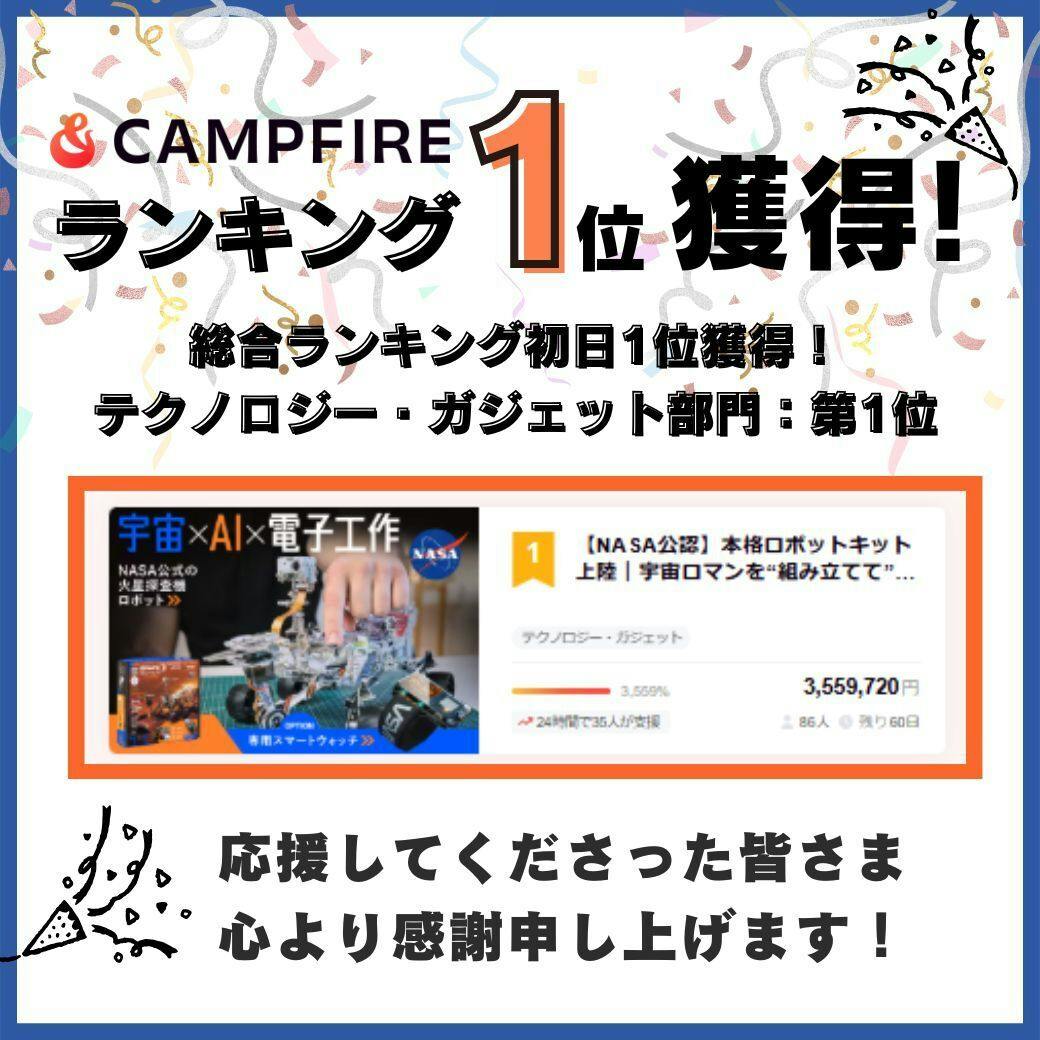 【話題沸騰】有名メディアにも多数掲載されました!こんにちは、NASA公式ロボットキット「火星探査ロボ・ローバー」プロジェクトチームです!日頃よりあたたかいご支援、本当にありがとうございます!いま注目の「大阪・関西万博」では、AI・宇宙開発・教育といった未来の技術と学びが大きなテーマとなっています。その“未来教育”を家庭で体験できるロボットとして、私たちのプロジェクト「火星探査ロボ・ローバー」が、多数の有名メディアに掲載されました!今回はその中から、特に注目の一部メディアをピックアップしてご紹介します。▼ 掲載メディア(一部)▼【NewsPicks】(株式会社ユーザベース)https://newspicks.com/news/14883497/【めざましmedia】(フジテレビ) https://mezamashi.media/articles/-/185734【現代ビジネス】(講談社) https://gendai.media/ud/pressrelease/cmecd1ouf000b410yl2gtg1ub【NEWS DIG】(TBS)https://newsdig.tbs.co.jp/articles/prtimes/2110483?display=1【@DIME】(小学館)https://dime.jp/company_news/detail/?pr=2270594【&[and]】(朝日新聞デジタルマガジン)https://www.asahi.com/and/pressrelease/15967425引き続きの応援、どうぞよろしくお願いいたします!\プロジェクトページはこちら/https://camp-fire.jp/projects/852557/view