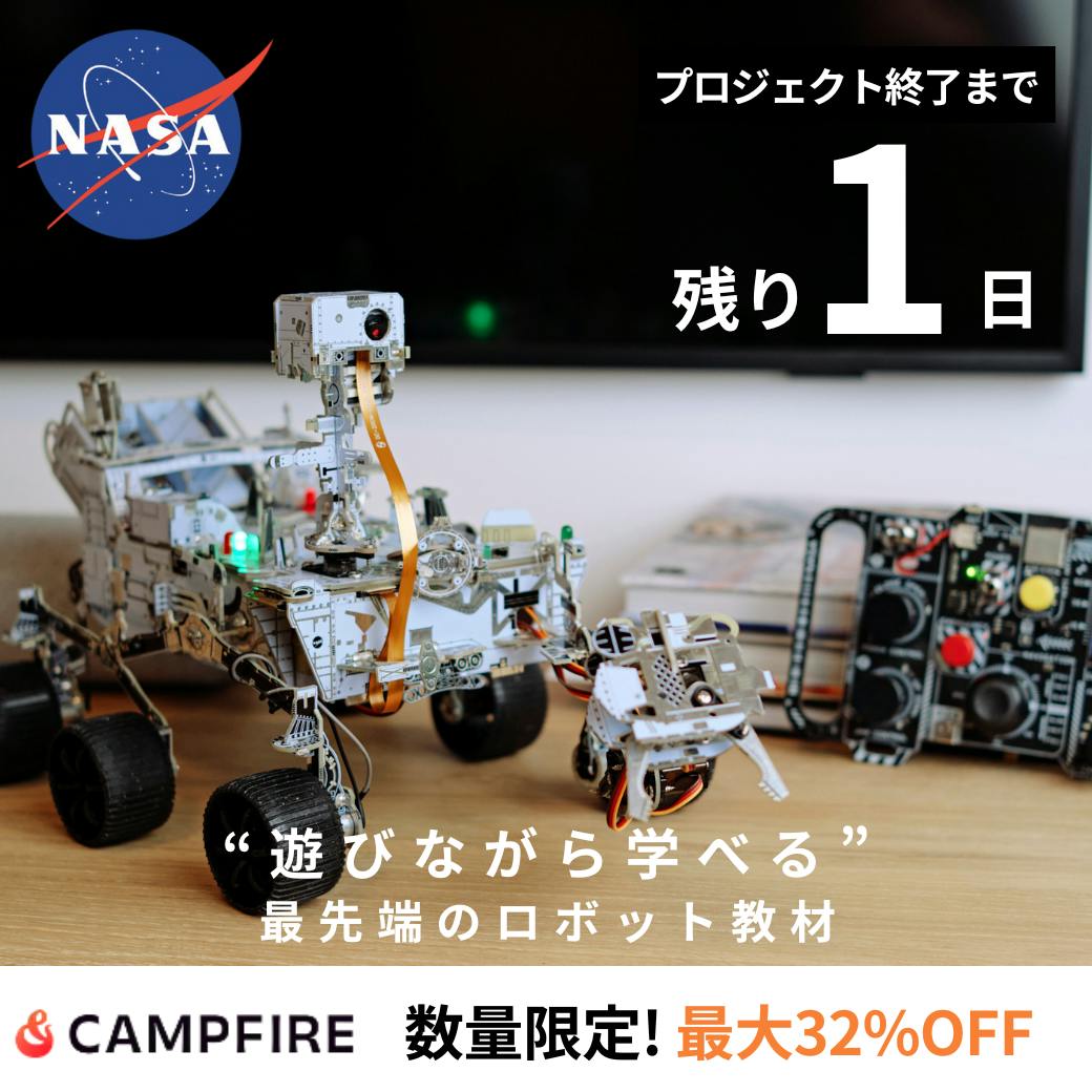 2025/10/18 11:05【残り12時間です!】NASA公式のロボットキット、購入できるのは今だけ!みなさま、たくさんのご支援を本当にありがとうございます!プロジェクトもいよいよ残り12時間となりました。子どもも大人も夢中になれる、NASA公式の本格ロボットキット。「火星探査ミッションを自分の手で操る」体験ができるのは、このプロジェクトだけです。◆今なら、特別価格で手に入る最後のチャンス◆通常販売では手に入らない限定セットも今回限りローバーを組み立て、動かすワクワクを、ぜひあなたの手で体験してください。最後まで応援、よろしくお願いいたします!\プロジェクトページはこちら/https://camp-fire.jp/projects/852557/view もっと見る