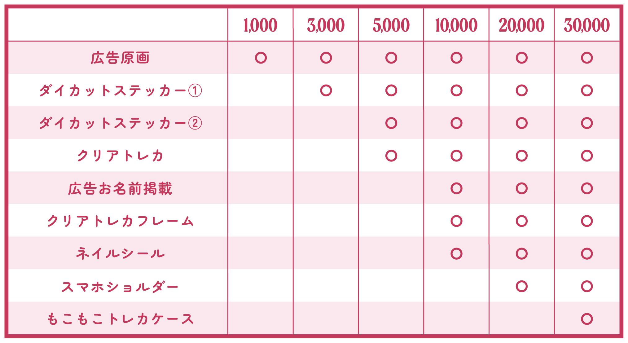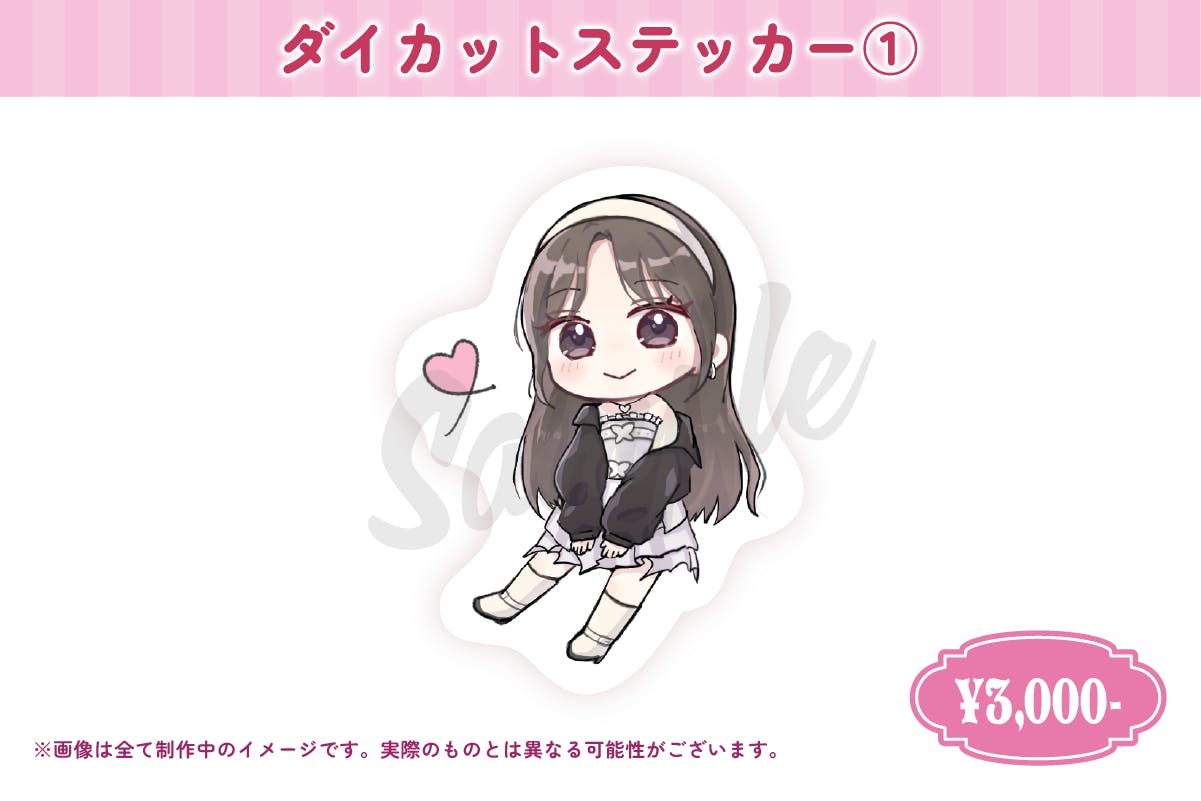広告原画(データ配布)、ダイカットステッカー2種(全2種)、クリアトレカ、クリアトレカフレーム、ネイルシール、スマホショルダー、もこもこトレカケース、広告へのお名前掲載(備考欄にお名前の記載をお願いします)
