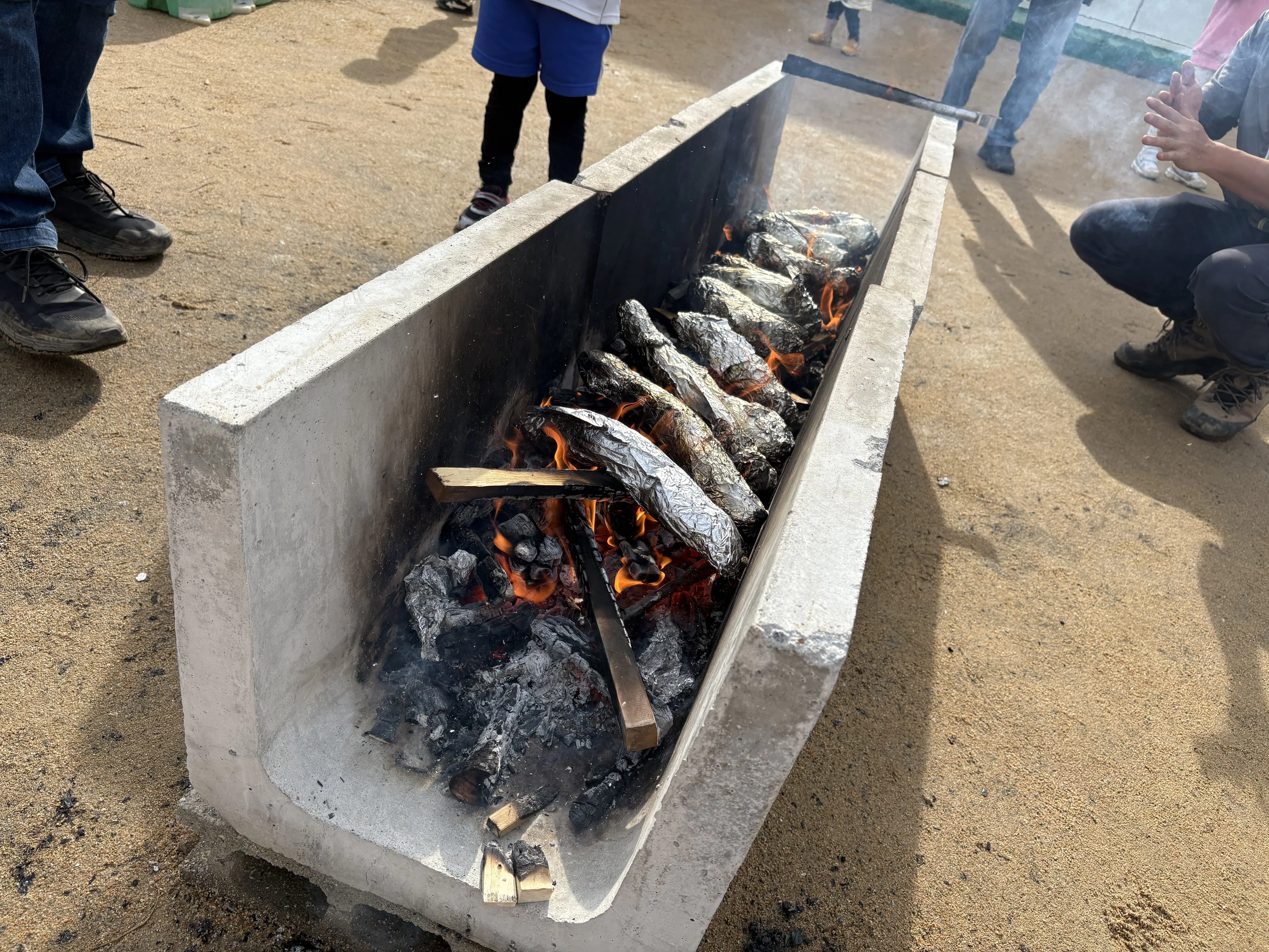 2025/11/28 11:0210月に芋掘り体験に来ていただいた幼稚園で焼き芋パーティーが開催され、焼き芋のお手伝いにいってきました!子供たちが割ってくれた薪を焚べて、さつまいもを焼きました。火の加減に苦戦しましたが、美味しい焼き芋が焼き上がり、子供たちからも大好評でした!今回は主に「兼六」の品種を焼き芋にしましたが、色々な品種を植えて見た目や味など比べてもらうのも面白そうだな、と思いました。 もっと見る