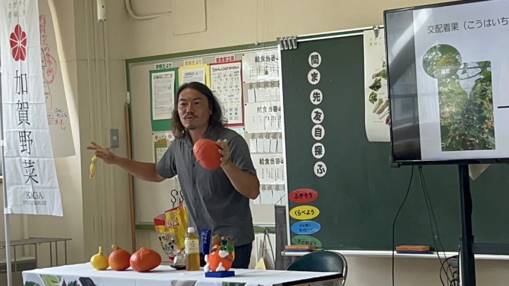 少し前になりますが、加賀野菜の一つ、「打木赤皮甘栗南瓜」についての出前授業に行ってきました!