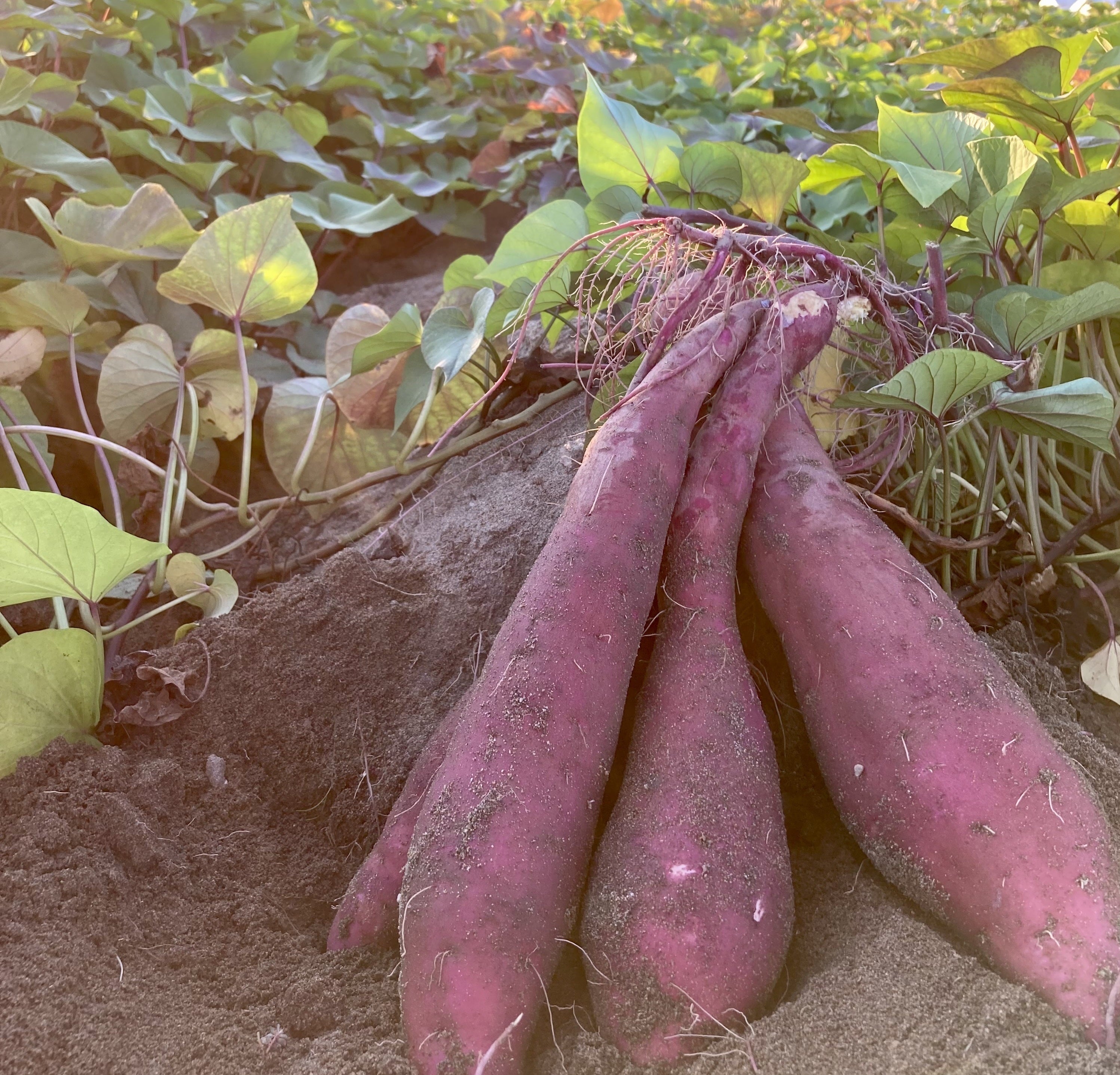 ある日、サツマイモの収穫体験に参加した子どもが、土ではなく砂地で育ったサツマイモを見て驚いた言葉です。別の子は、サツマイモ掘りそっちのけで虫探しに夢中になり、「なんでサツマイモは紫色になるの?」と、お母さんに真剣に問いかけていた子もいました。