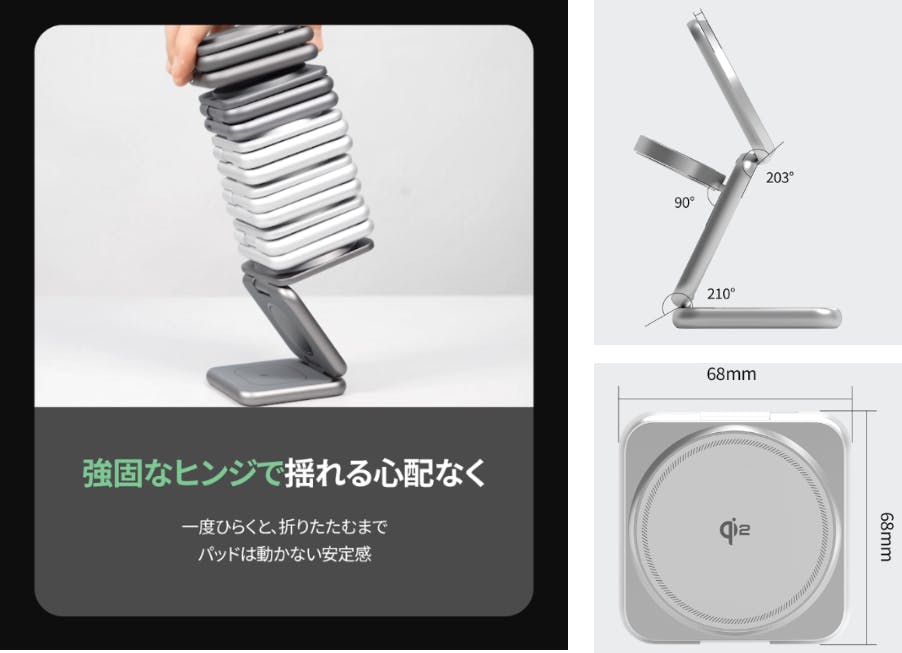 また、お好みの角度で通話や動画鑑賞ができるので、ワイヤレス急速充電のみならずスマホスタンドとしても十分に活躍してくれます。