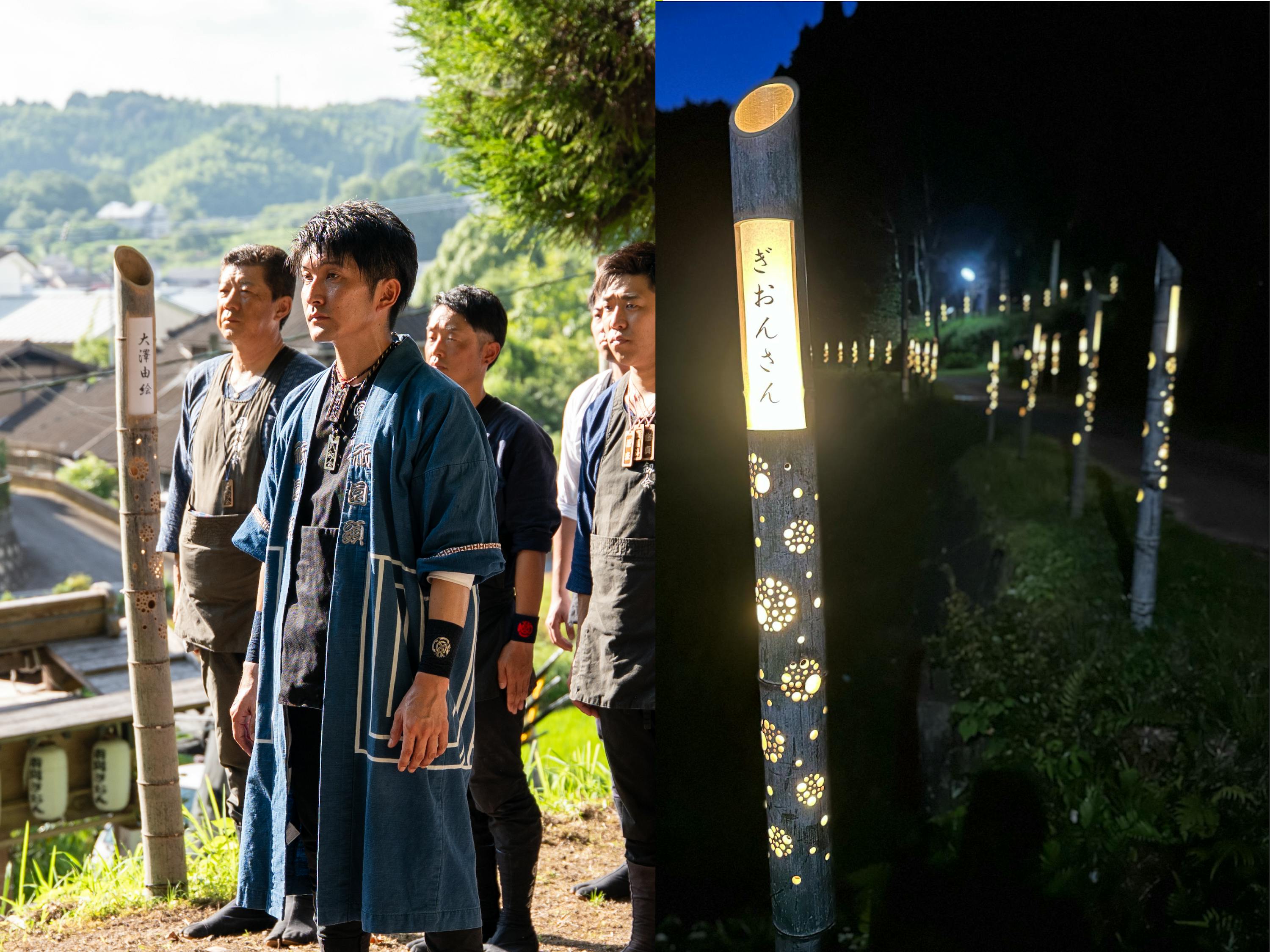 昨年実施したクラウドファンディングにおいて、多くの方に支援していただいたのが「竹あかり」のコースでした(31名の方が支援)。祭り当日、支援者のお名前を記載した竹あかりが八剣神社の参道を灯す風景は「こんなにたくさんの人が祭りを想ってくれているんだ」という実感を感じさせたと言います。(北原さん談)