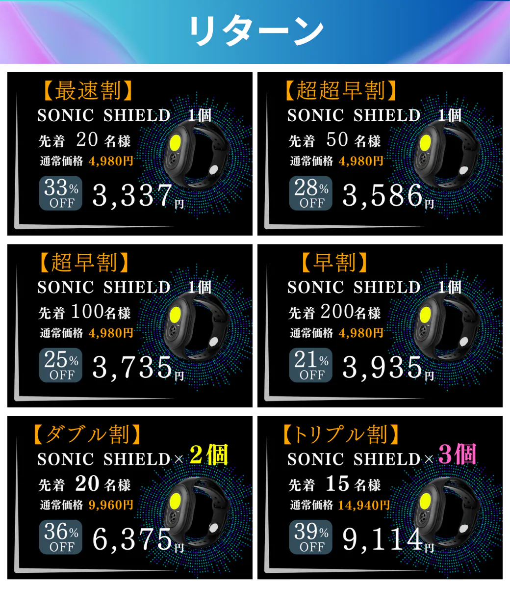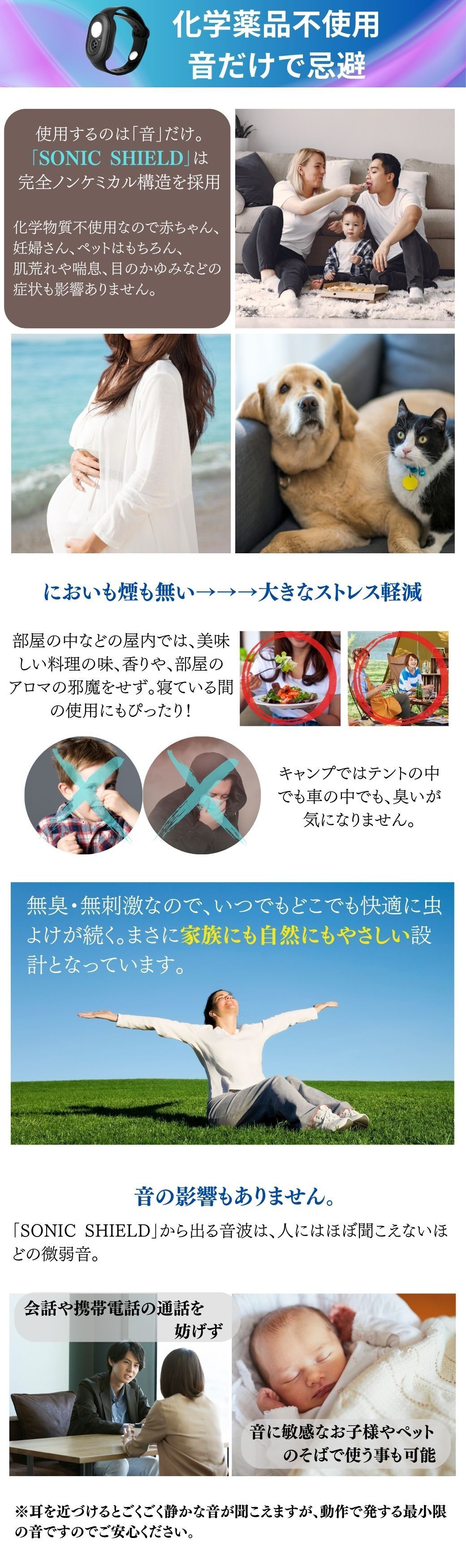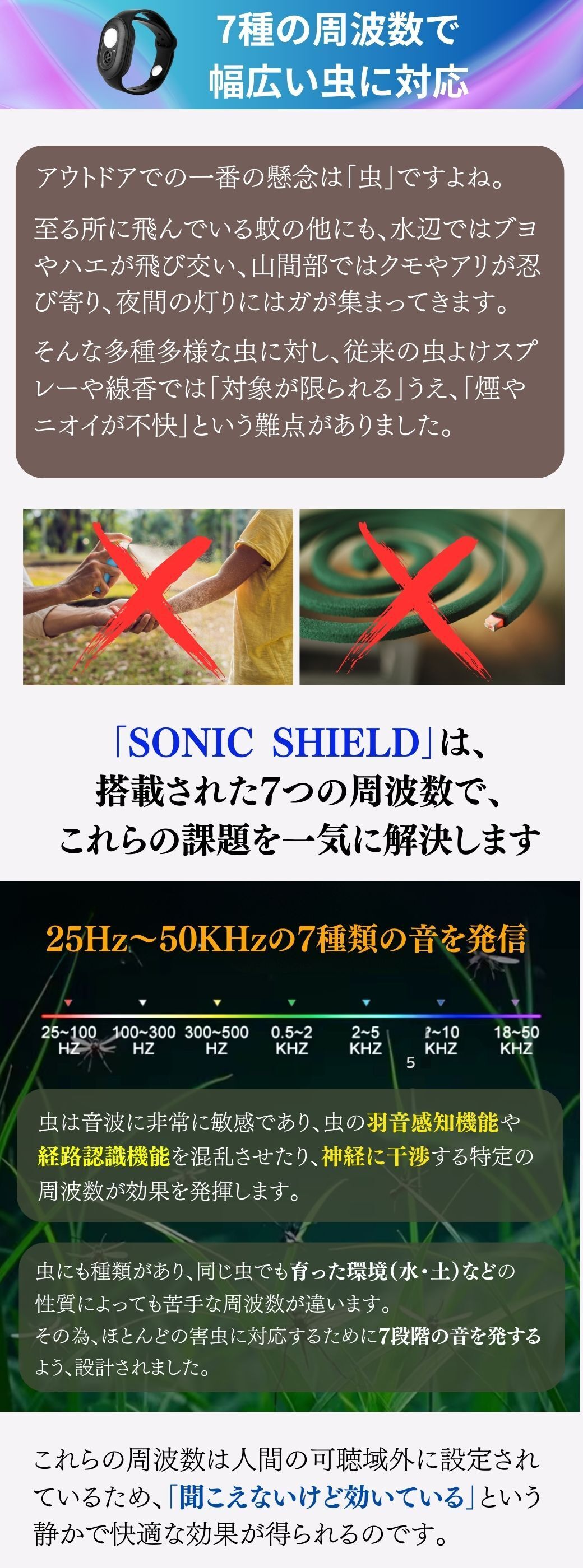 みなさま、この度は超音波虫除けリストバンド「SONIC SHIELD」にご興味頂きありがとうございます。