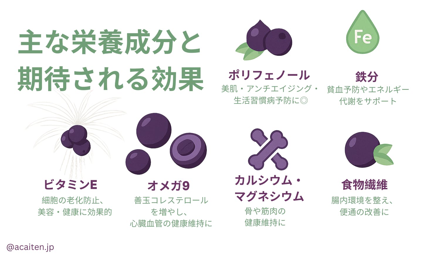 アマゾンの自然が育んだアサイーには、日々の生活をサポートする栄養素がたっぷり。