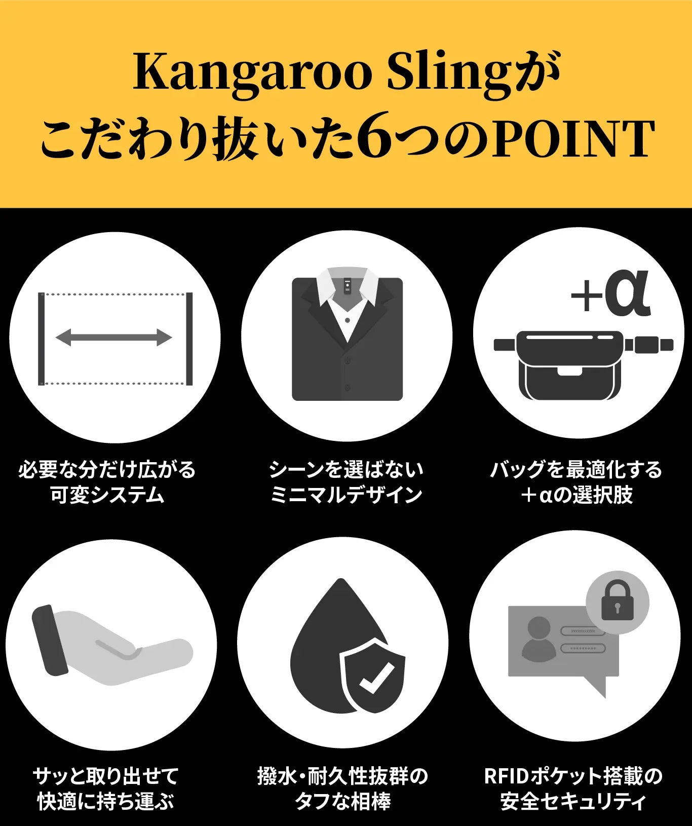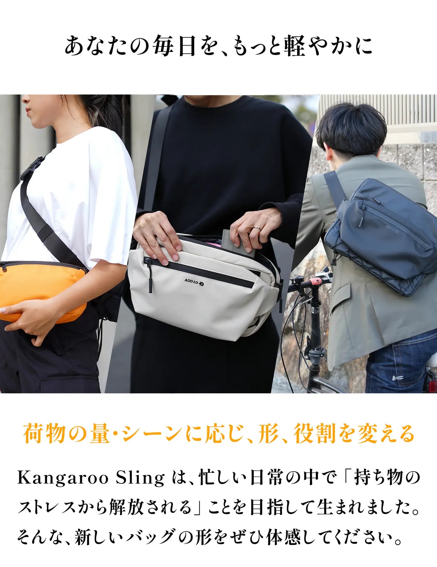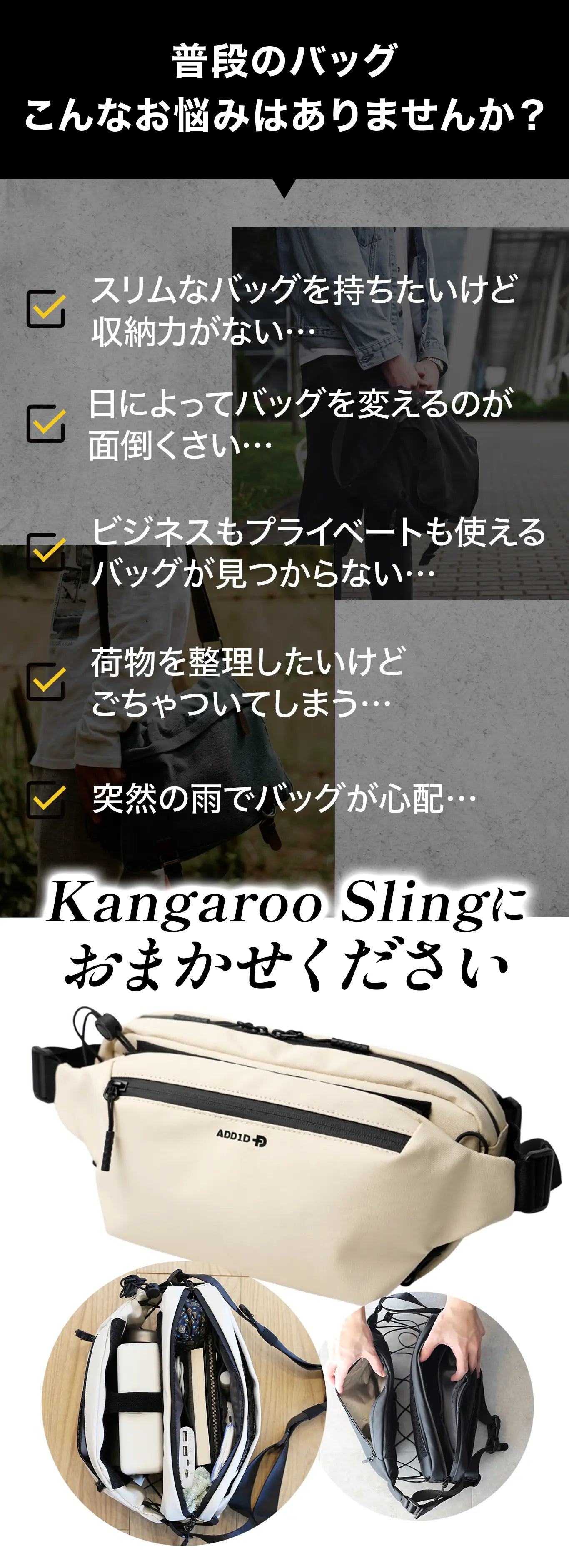 Kangaroo Sling は、見た目のスマートさだけでなく、バッグを変えずに長く愛用したい人にとってどんな環境でも安心して持ち運べる「頼れる相棒」です。
