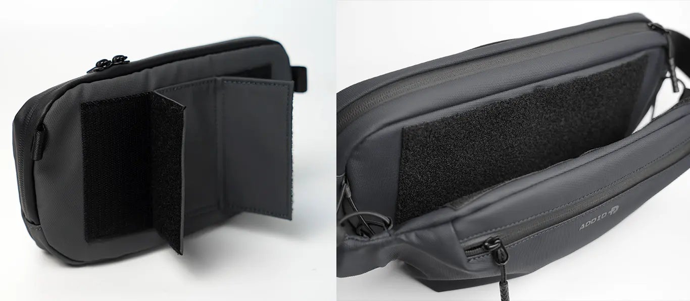 Kangaroo Sling には、大小9つのポケットが配置され、スマホ・財布・ガジェットなど、アイテムごとに最適な収納スペースを確保。