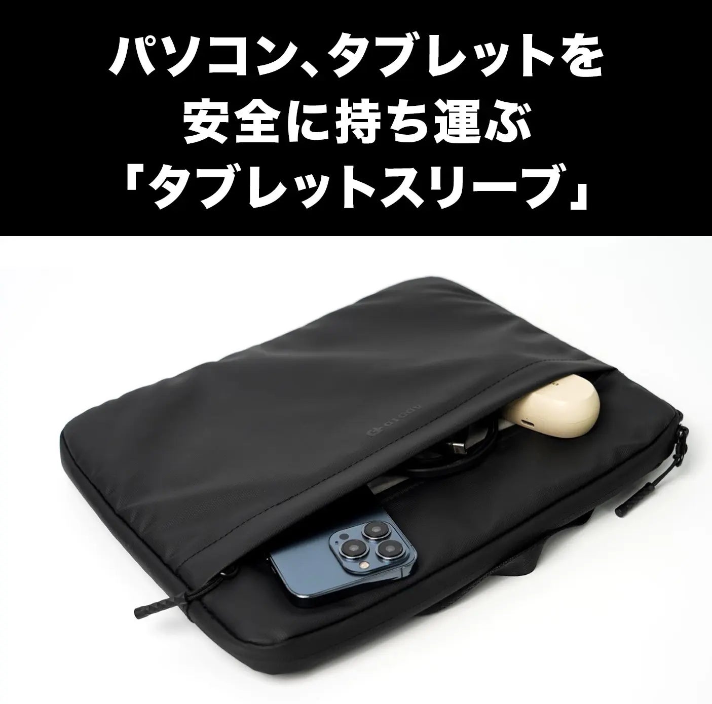 PCやタブレットを安全に持ち運びできる専用スリーブで、13インチまでの多くのデバイスに対応。
