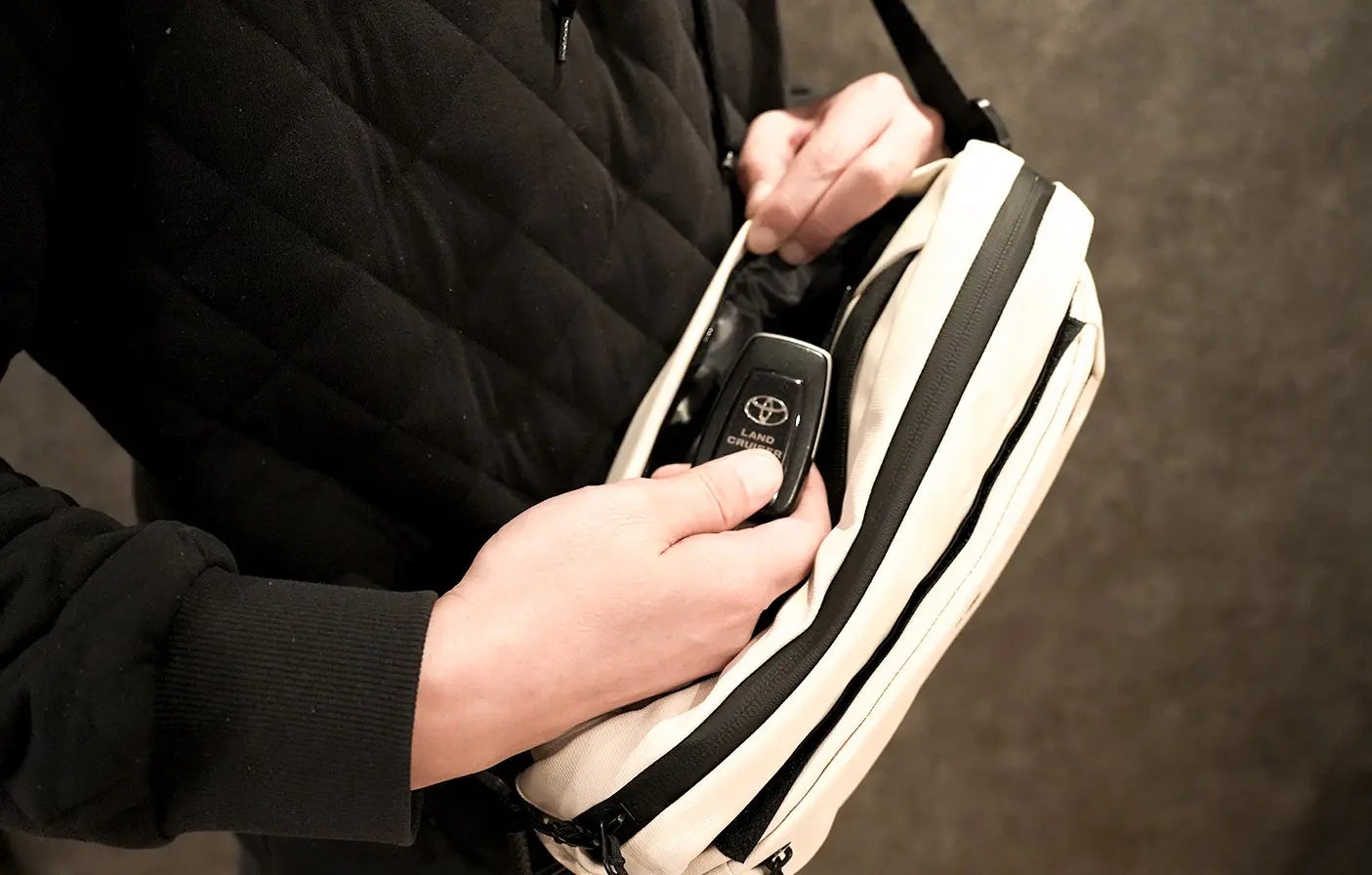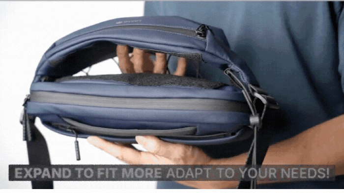 通常のバッグは容量が固定されており、「あと少しだけ入れたい」というときに融通がききません。そんな日々の不便を解消するために生まれたのが、Kangaroo Sling(カンガルースリング)です。