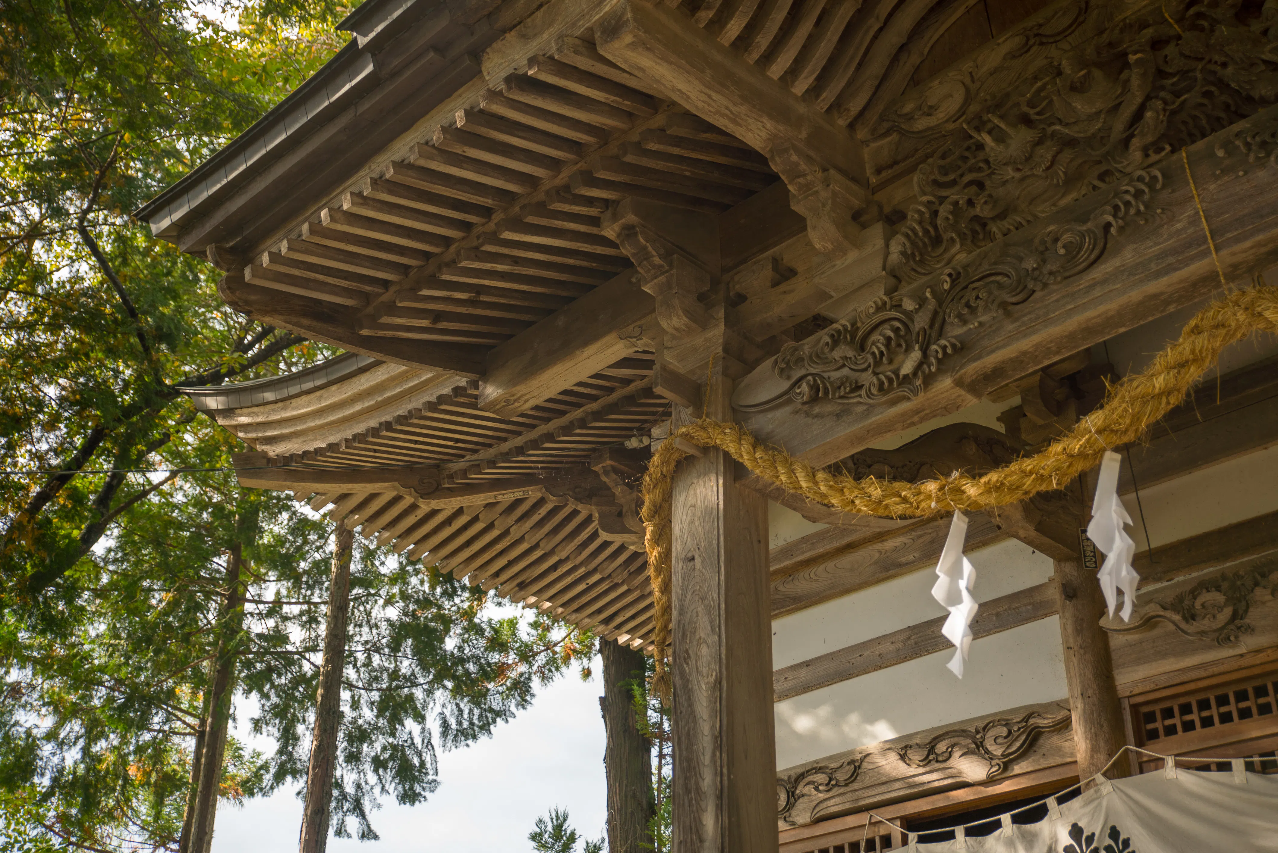 西暦718年(奈良時代養老2年)の創建と伝えられており、本殿は15世紀末期~16世紀初期の建立、県指定文化財に登録されています。撞木造と呼ばれる神仏習合時代の様式で、現存するものは珍しく、大変貴重とされています。