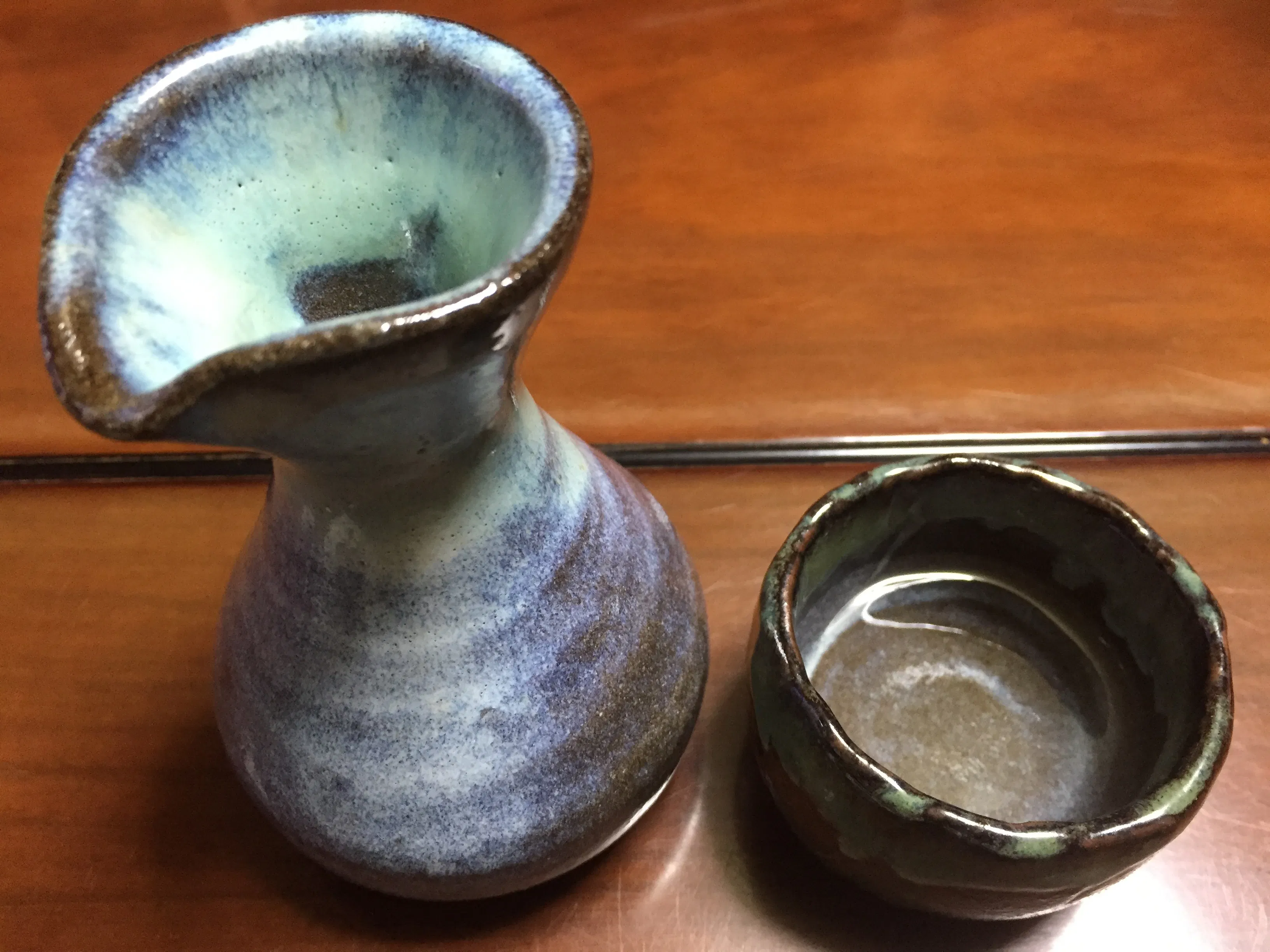 地元松代の綺麗な松代焼のお猪口と徳利をご用意しています。記念ラベルの純米酒のおともにどうぞ。