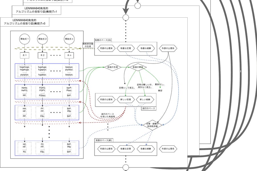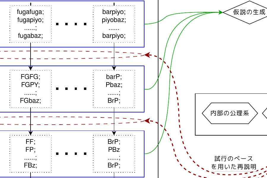 かつて在ったプログラミングパラダイムを復古し、少しの構想を追加し、その実装を新たに開発することで、規則の適用と規則の発見とが相互に補完し合いながら回転してゆく、根拠を示しつつ、規則を発見してゆくプログラムを記せるようになり、このプログラムへと必要な公理(最初のルール)を設定して、対話の窓口を設けることで、人とコンピュータとが対話的に数学を学べるようになると考えています。