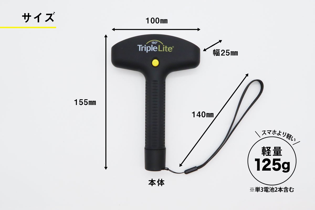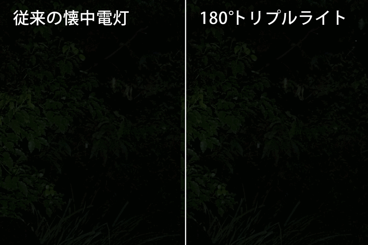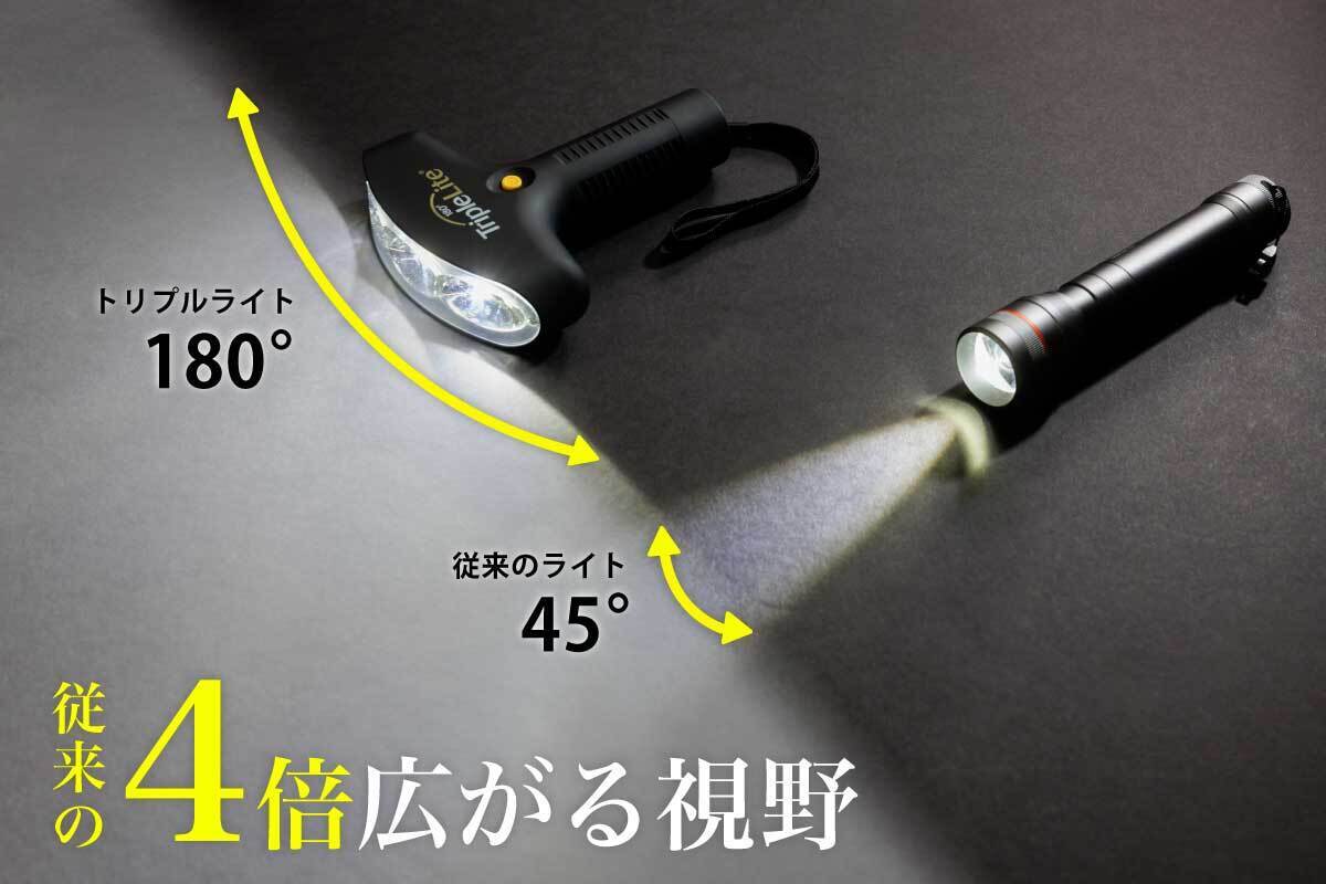 【180°トリプルライト】特許取得!180°照射できる懐中電灯