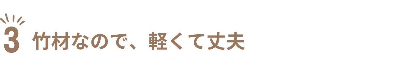 軽くて、しなやか、丈夫な竹材を使用。竹は成長力が高く、CO2を吸収して酸素を放出することができるため、サステナブルな素材としても注目されています。自然な風合いで、お部屋との相性も抜群です。※バネ部分は金属です。