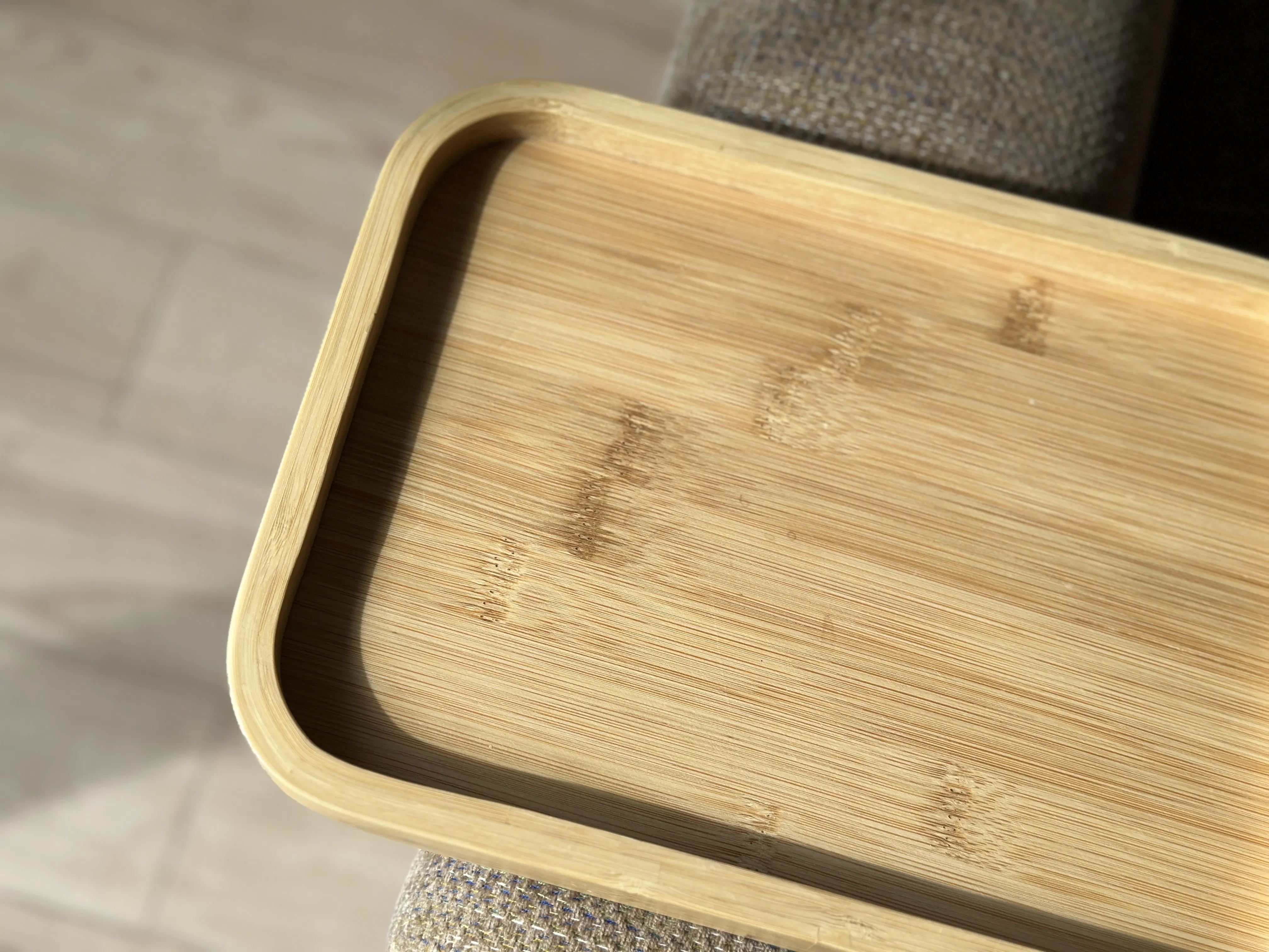 このソファアームクリップトレイは、香港の展示会で見つけたときに「日本の住空間にぴったりだ」と感じ、ぜひ取り扱いたいと思ったアイテムです。