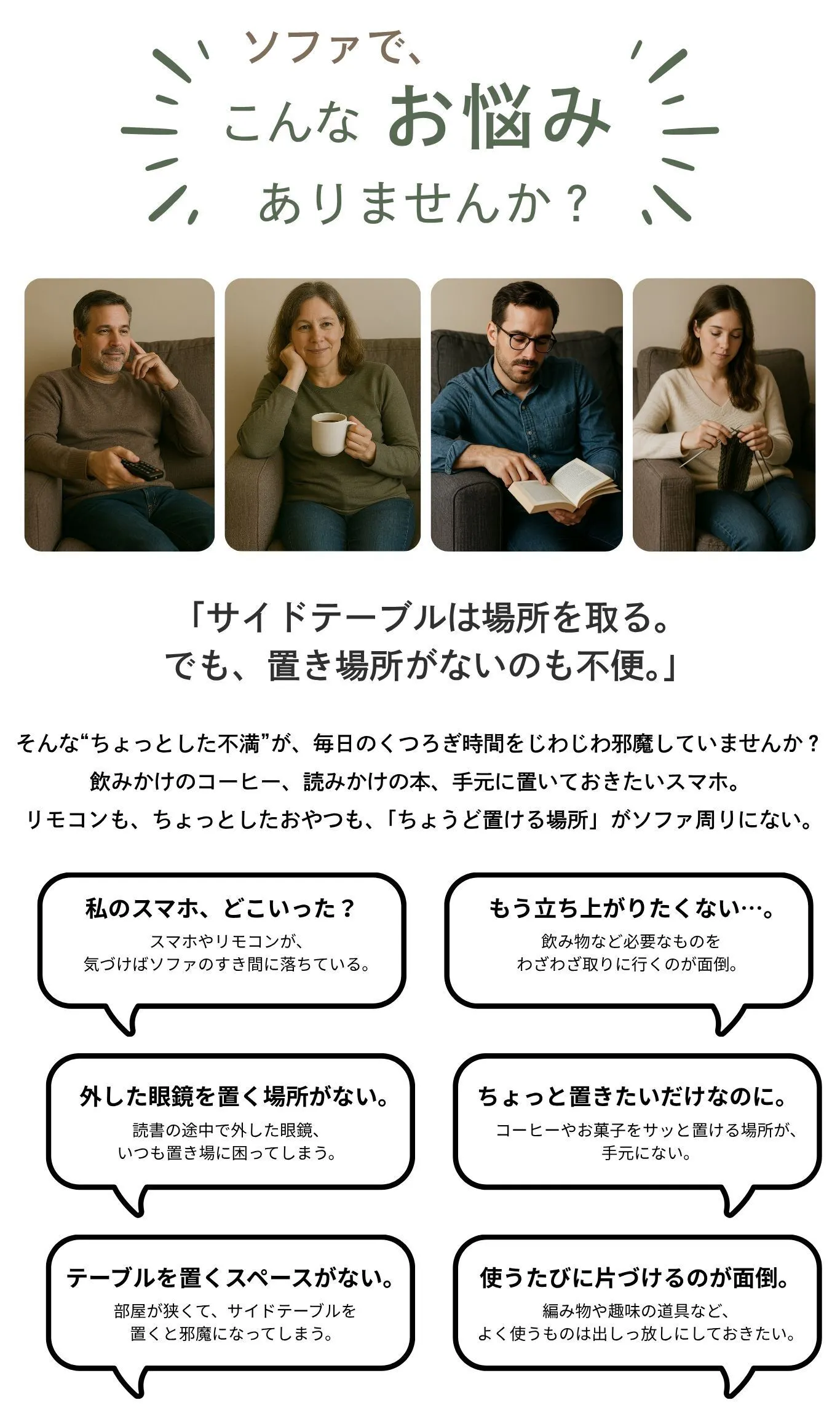 2025/07/24 19:00皆さまこんにちは。本日より「ソファアームクリップトレイ」のプロジェクトがスタートしました!すでにご支援くださった皆さま、本当にありがとうございます。また、「お気に入り登録」などの応援もとても励みになっています。本製品は、「ソファの横にちょっとした置き場が欲しい」という声から生まれた、“挟むだけ”で使える省スペースなサイドテーブルです。テーブルを増やさず、必要なときだけ手元にスペースをつくれる。暮らしにちょうどいい快適さをお届けするアイテムです。\今ならすぐ届くチャンス!/【7/30(水)まで】スピード発送キャンペーンプロジェクト開始から7日間以内のご支援で、ご注文から3営業日以内に発送いたします(数量限定)「早く試してみたい!」という方は、ぜひこの機会をご活用ください。 もっと見る