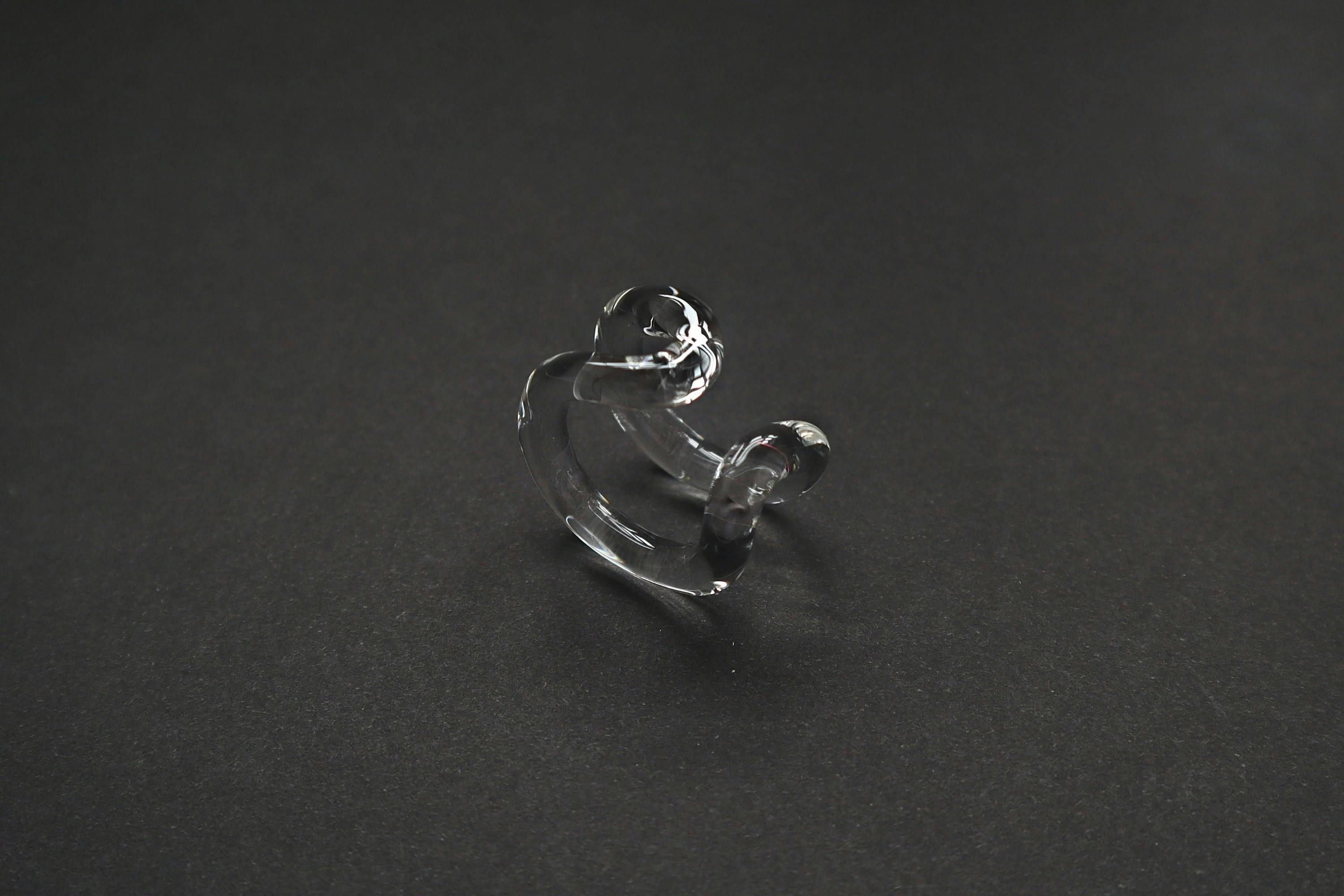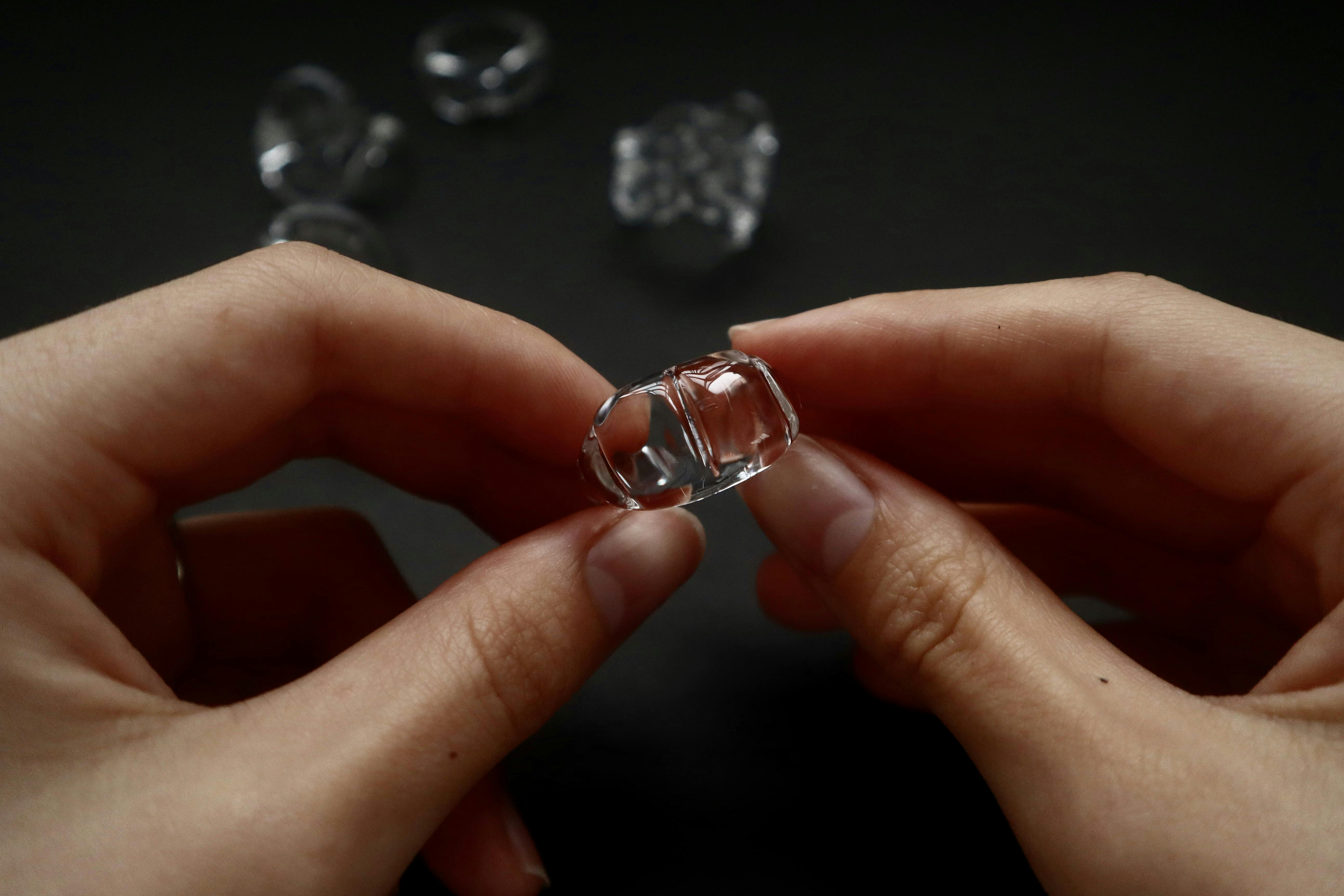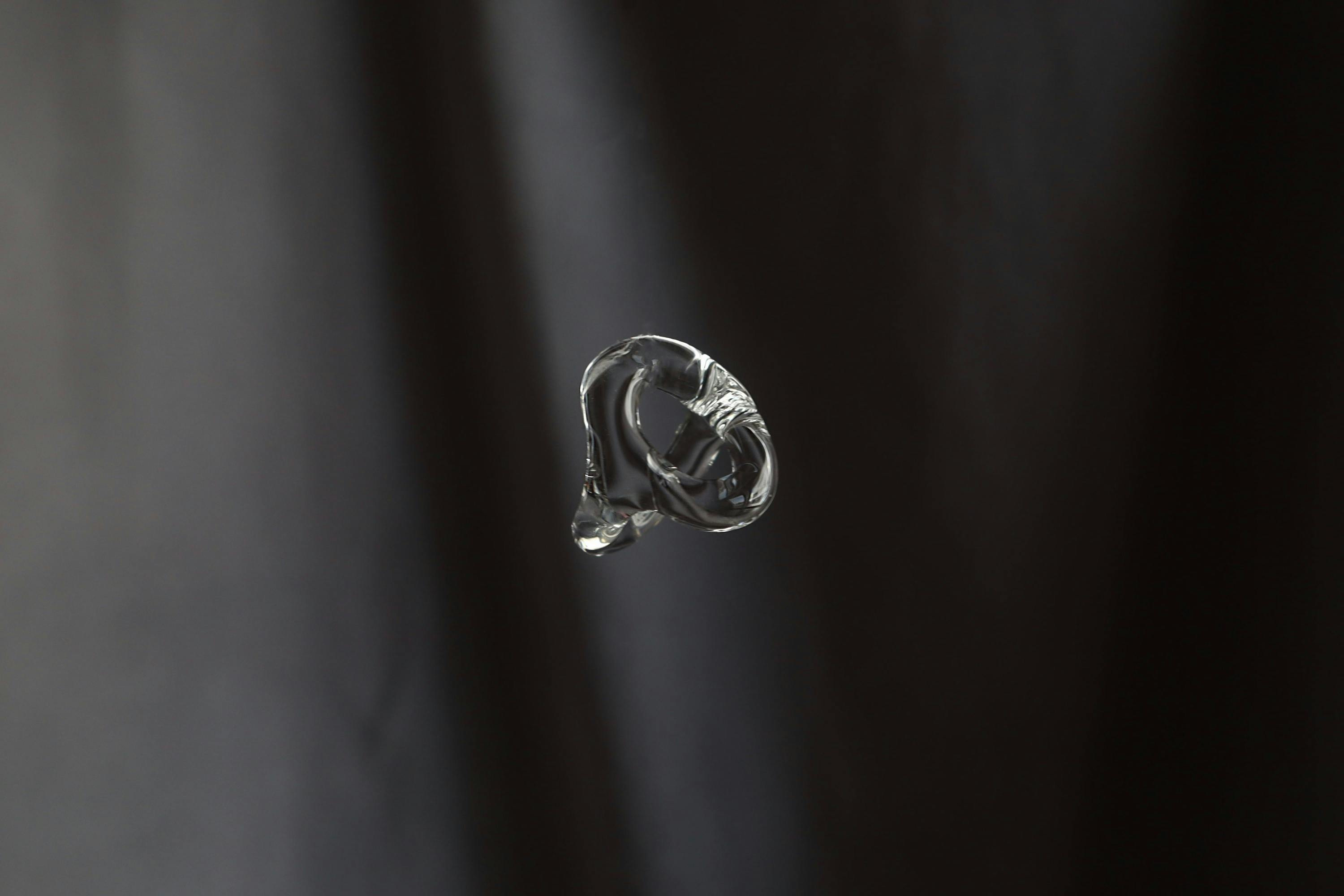 このガラスを使用した指輪は、まるで指に水をまとったかのような印象を放ちます。