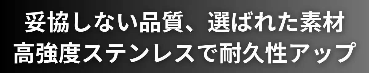 高強度ステンレスを使用し、サビに強く長期間の使用にも耐える設計。日常使いにふさわしい、妥協のない素材選びで品質と信頼性を両立しました。