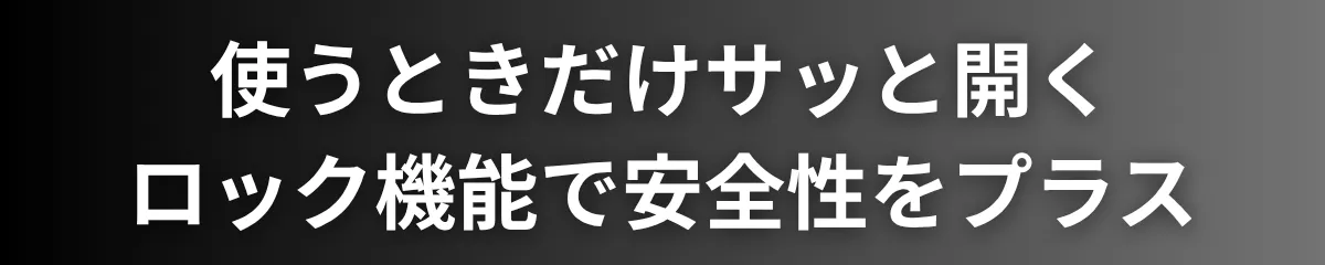 移動中や保管時のトラブルを防ぎ、いつでも安心して持ち歩ける設計です。日常使いはもちろん、外出先や旅行中にもぴったりの機能です。