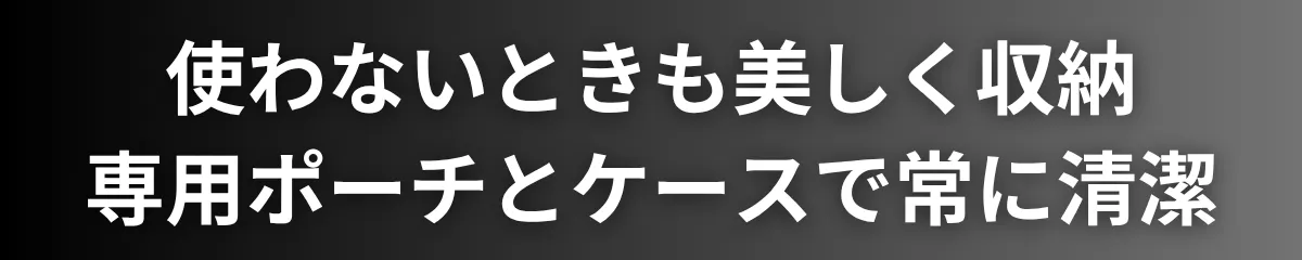 高級感のある専用ポーチは、外出時の持ち運びに最適。爪切り本体をしっかり保護しつつ、スタイリッシュに持ち歩けるデザインです。