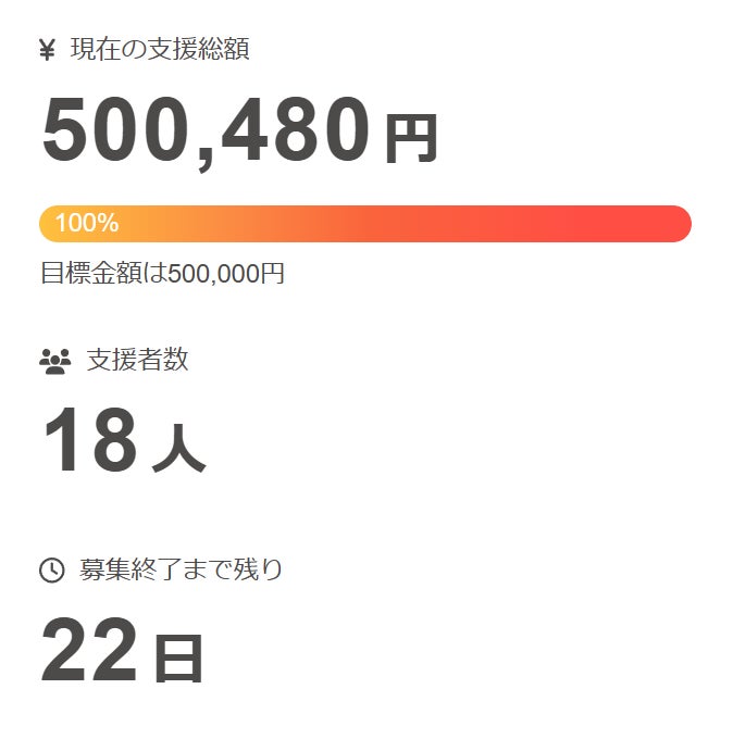 このたび、開始からわずか3日目に目標金額 500,000円 を無事に達成いたしました!