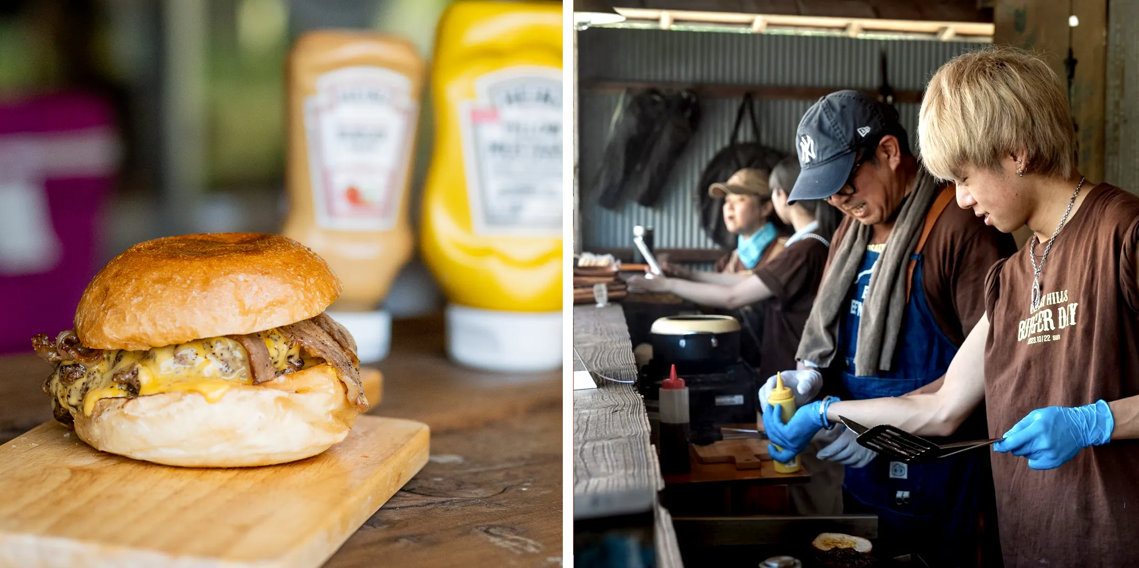 関西のハンバーガーレジェンドと友人達に協力してもらい開催したBURGER DAYハンバーガー屋を思いついた時、ご縁があった関西ハンバーガーのレジェンドにイベントとしてPOPUPをしてもらい、家族と友人総出で手伝いをして、凄く楽しいひとときを共有できたこと。そしてハンバーガーをほおばる人達の笑顔を見ながら、バサリーヒルズでハンバーガーショップをやるのは間違ってないと確信しました。そして、今まで全くやったことの無いハンバーガー作りに挑むことになります。