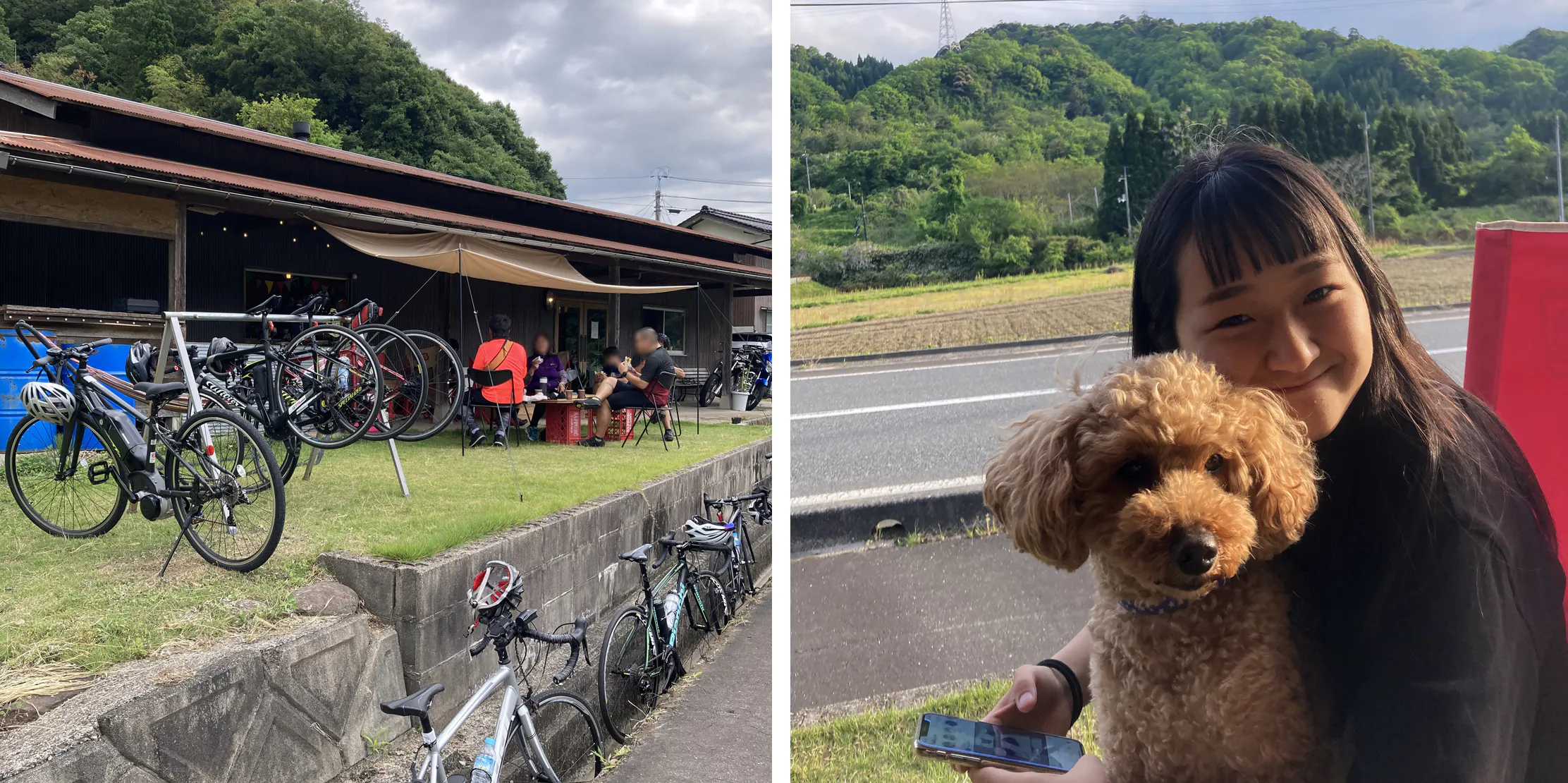 サイクリストやライダーの方々など沢山のお客様が来店、ペット連れも大歓迎!ワンちゃんのためのハンバーガー「ワンバーガー」も試作中!