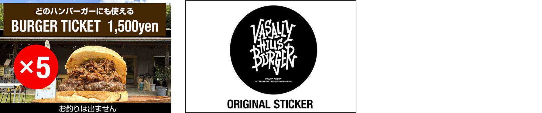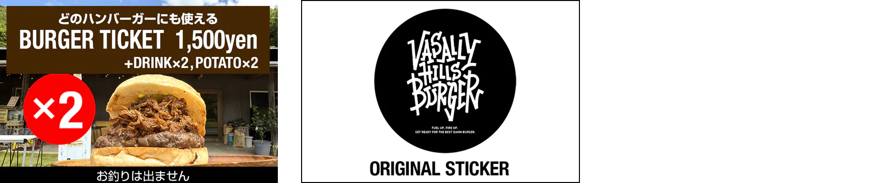 これまでのご支援頂いた方のお声を受けて、新たに「ペアチケット 5,000円」(1,500円のバーガーチケット×2、ポテト×2、ドリンク×2、オリジナルステッカー×2)を新設致しました。更にお得で使いやすい返礼品となっていますのでよろしくお願いします。