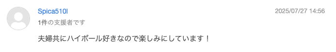 こんばんは!リナまるです!ご夫婦でハイボール、とても素敵です。ぜひ素敵なお酒時間のお手伝いができたら嬉しいです。