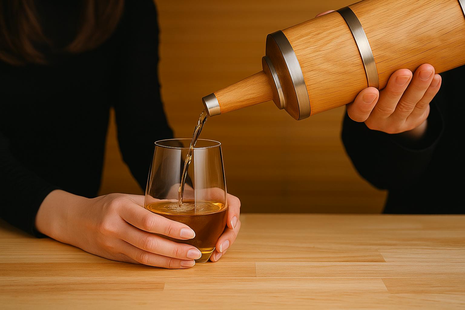 熟成ボトルに注いだお酒は、24時間後には角が取れ、まろやかな香りを放つ特別な一杯に。数日寝かせればさらに深みを増し、同じ銘柄でも全く違う体験ができます。