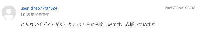 ご支援そして、大変嬉しいお言葉ありがとうございます!皆様からのメッセージは全て読ませていただいております!