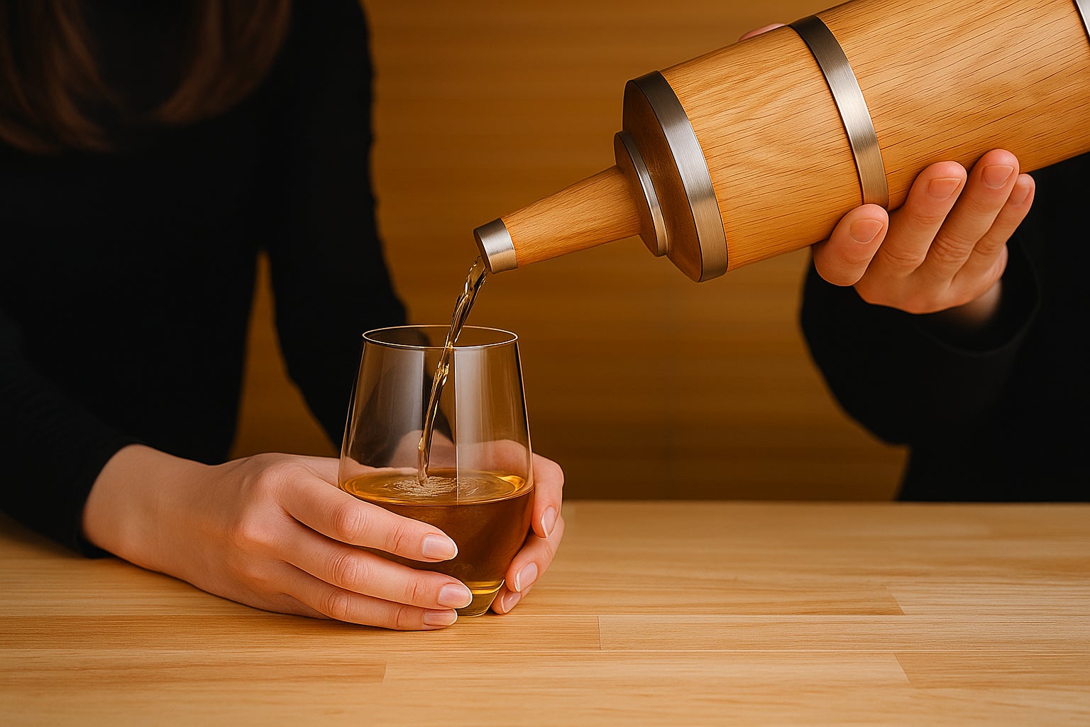 熟成ボトルは、完成された高級酒ではなく、注いで時間が経つごとに香りと味が育っていく“過程”を楽しむ新発想の体験。