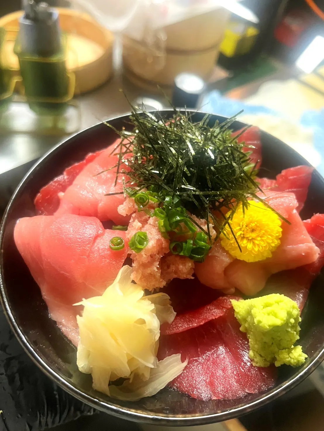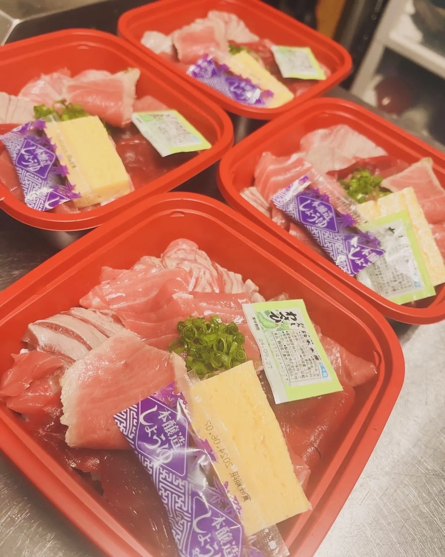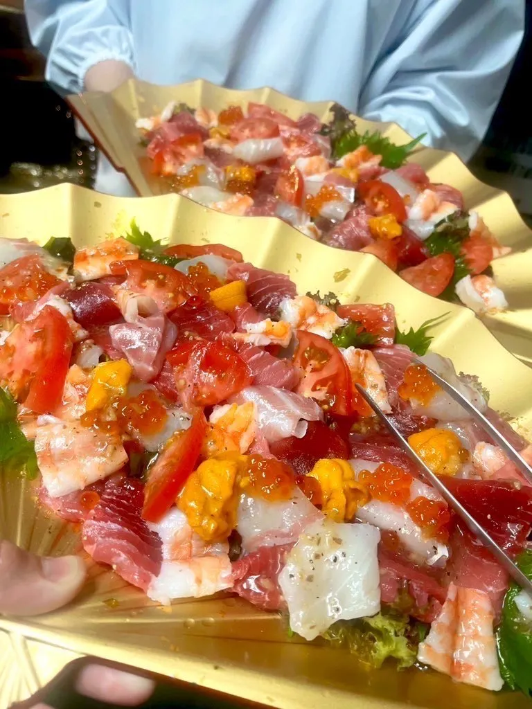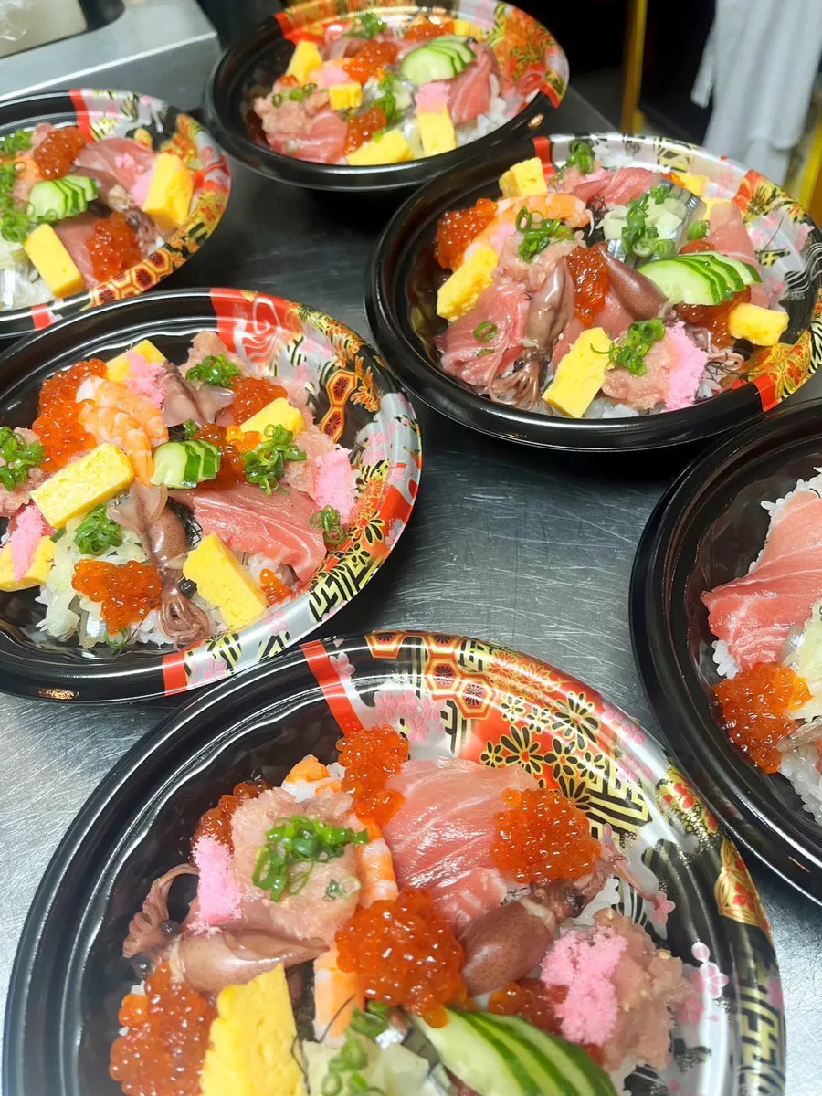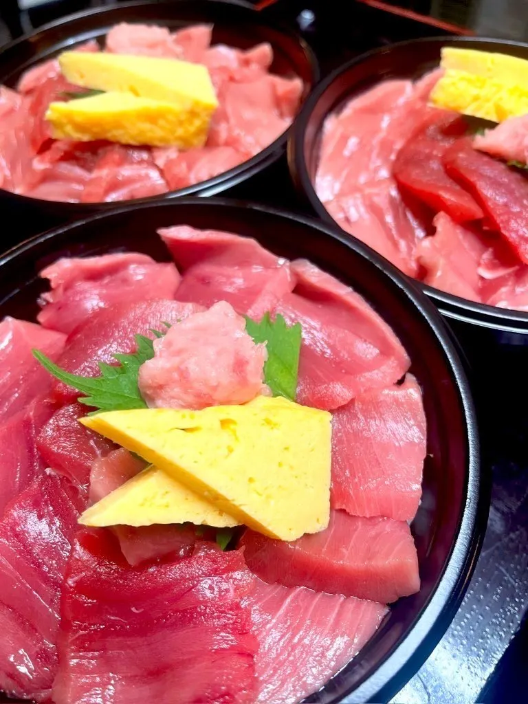 美しく並べられたマグロ丼や海鮮丼は、その鮮やかな色合いと豪華さで目を引き、思わず手に取りたくなる衝動を呼び起こします。
