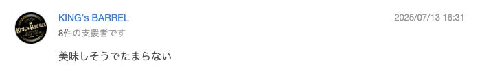 皆さんこんばんは!ゴールデンハイボールのリナまるです!【美味しそうでたまらない】とは私たちも嬉しくてたまらないです。。。!ご支援いただき感謝申し上げます!